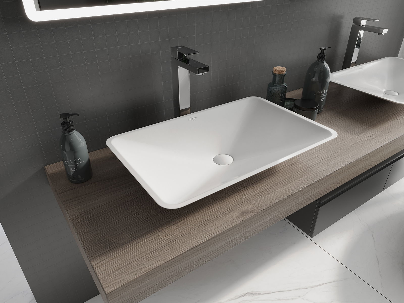Produkt bol vyrobený z konglomerátu. Vyznačuje sa hladkým povrchom a vysokým odporom voči mechanickému poškodeniu a tvorbe škrabancov. Trvalé riešenie, ktoré si udržuje estetický vzhľad po mnoho rokov používania.