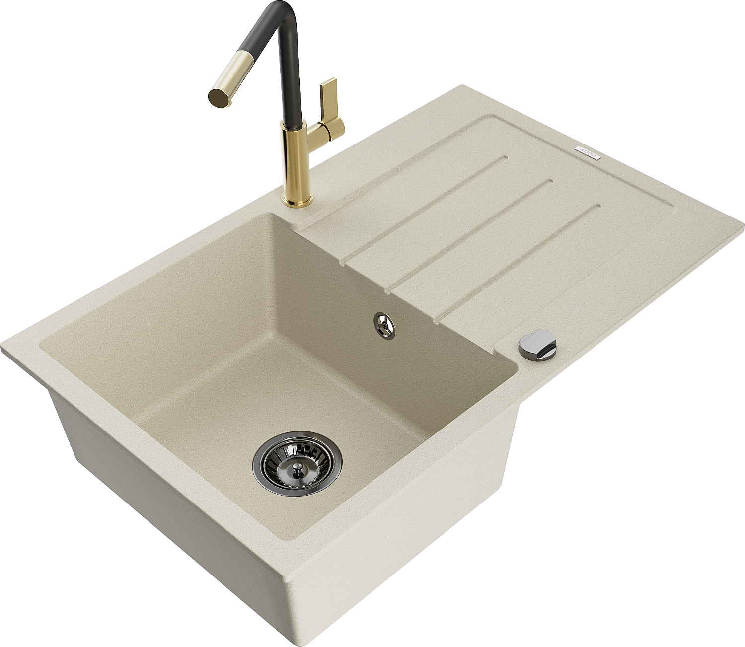 Mexen Bruno žulový drez s 1 komorou a odkvapkávačom a kuchynskou batériou Flora, béžový - 6513-69-670401-57-B