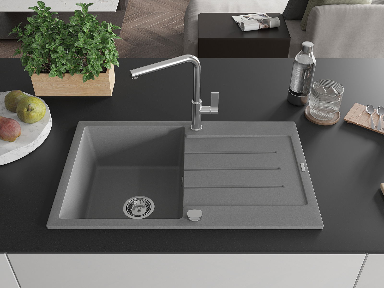 Povrch umývadla je odolný voči škvrnám a sfarbeniu, vďaka čomu sa ľahko čistí a zachováva si svoju farbu po dlhú dobu. Estetický a prakticky dopĺňajúci každú kuchyňu.