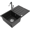 Mexen Bruno granitový drez 1-komorový s odkvapkávačom a kuchynskou batériou Flora, čierny škvrnitý - 6513-76-670401-07