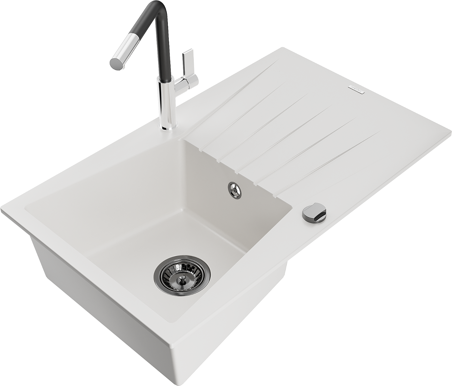 Povrch umývadla je odolný voči škvrnám a sfarbeniu, vďaka čomu sa ľahko čistí a zachováva si svoju farbu po dlhú dobu. Estetický a prakticky dopĺňajúci každú kuchyňu.