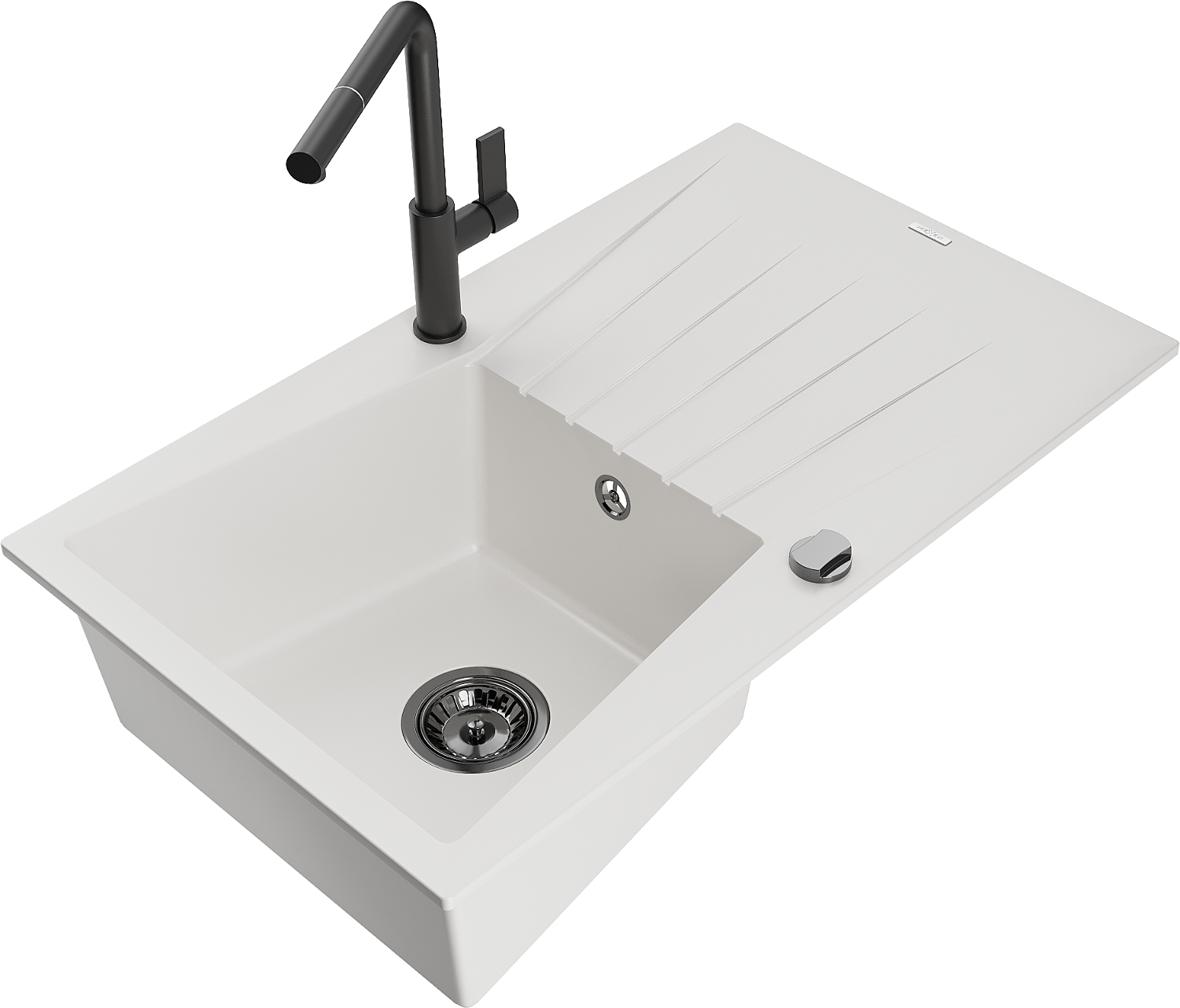 Povrch umývadla je odolný voči škvrnám a sfarbeniu, vďaka čomu sa ľahko čistí a zachováva si svoju farbu po dlhú dobu. Estetický a prakticky dopĺňajúci každú kuchyňu.
