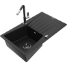 Mexen Cesar granitový drez s odkvapkávačom a kuchynskou batériou Flora, sivý - 6514-71-670401-07-B