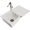 Povrch kuchynského drezu je odolný voči škvrnám a zafarbeniu, vďaka čomu sa ľahko udržiava a zachováva svoju farbu počas dlhého obdobia používania. Estetický a praktický doplnok pre každú kuchyňu.