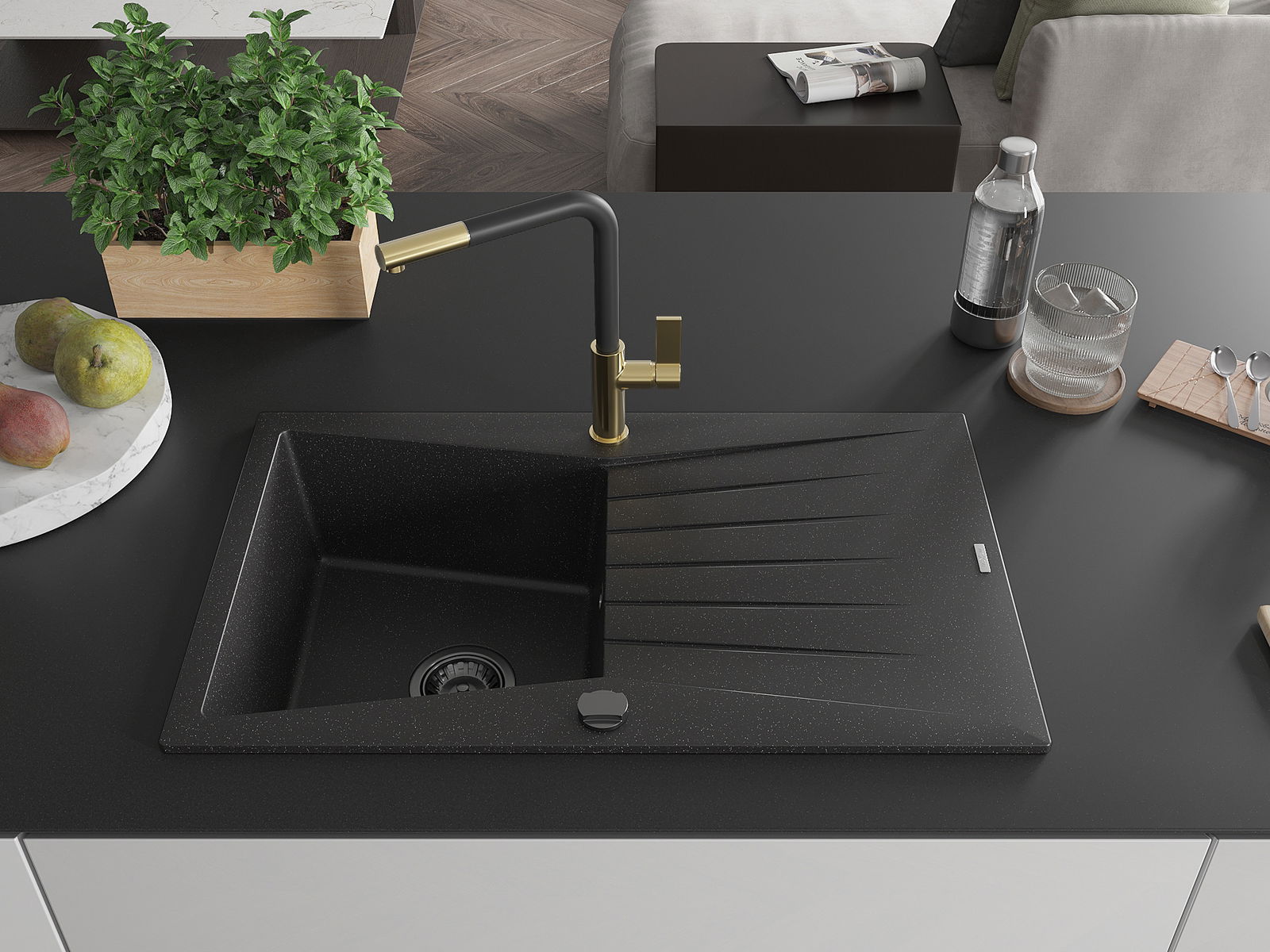 Drez bol vyrobený z vysoko kvalitného granitu. Predstavuje elegantné, ale predovšetkým praktické doplnenie každej kuchyne, nezávisle od jej štýlu. Vysoká kvalita a trvácnosť granitu zaisťujú dlhodobé používanie.