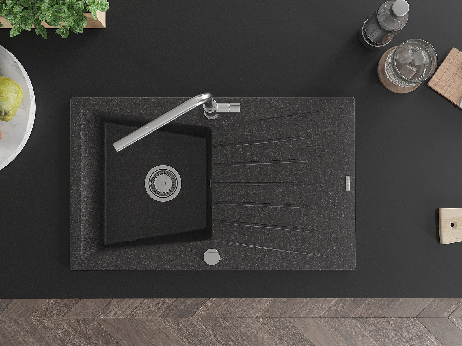 Drez bol vyrobený z vysoko kvalitného granitu. Predstavuje elegantné, ale predovšetkým praktické doplnenie každej kuchyne, nezávisle od jej štýlu. Vysoká kvalita a trvácnosť granitu zaisťujú dlhodobé používanie.