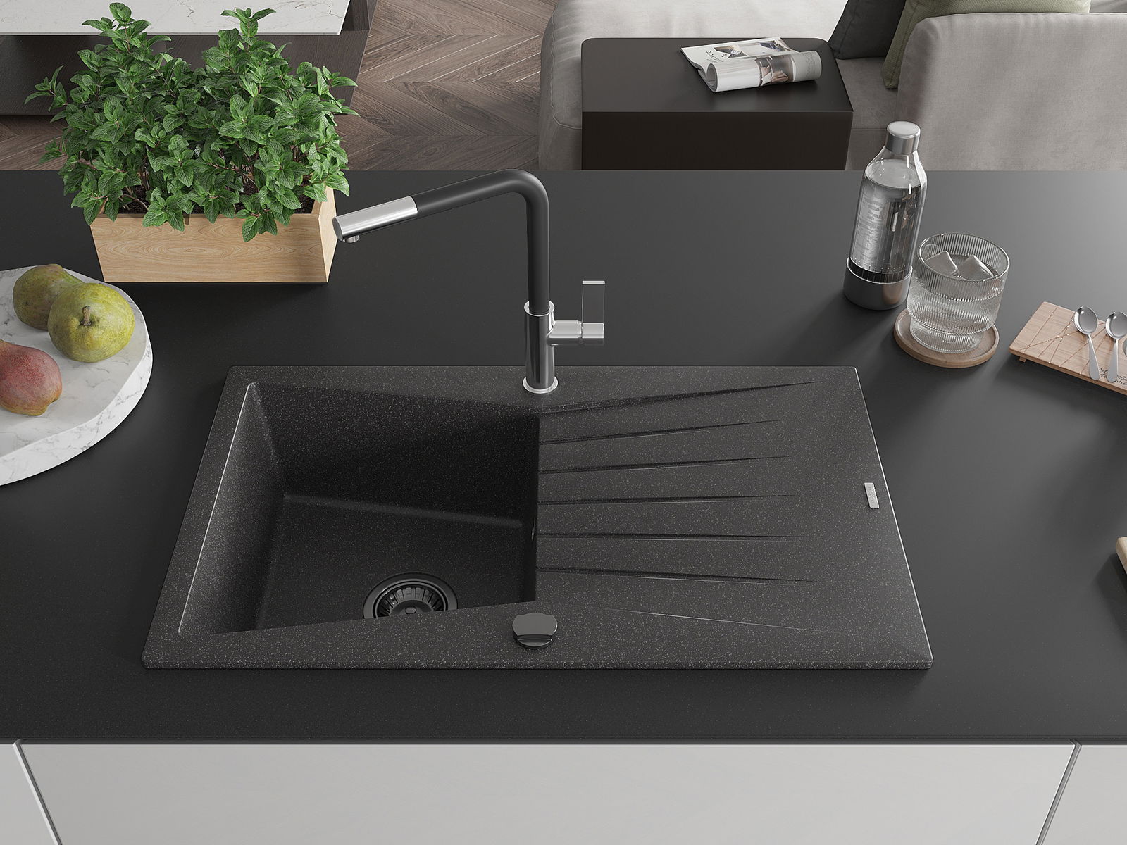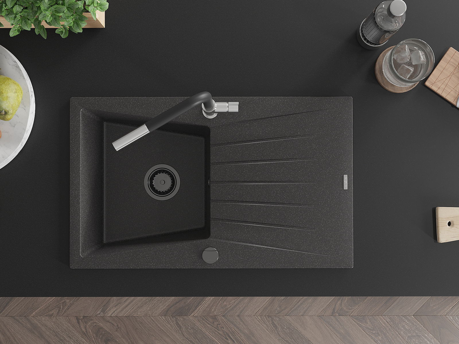 Povrch umývadla je odolný voči škvrnám a sfarbeniu, vďaka čomu sa ľahko čistí a zachováva si svoju farbu po dlhú dobu. Estetický a prakticky dopĺňajúci každú kuchyňu.
