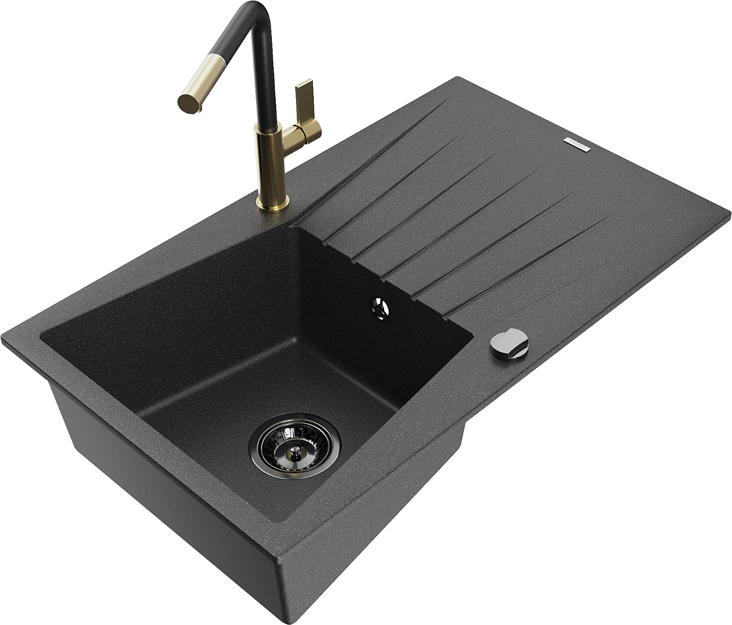 Povrch kuchynského drezu je odolný voči škvrnám a zafarbeniu, vďaka čomu sa ľahko udržiava a zachováva svoju farbu počas dlhého obdobia používania. Estetický a praktický doplnok pre každú kuchyňu.