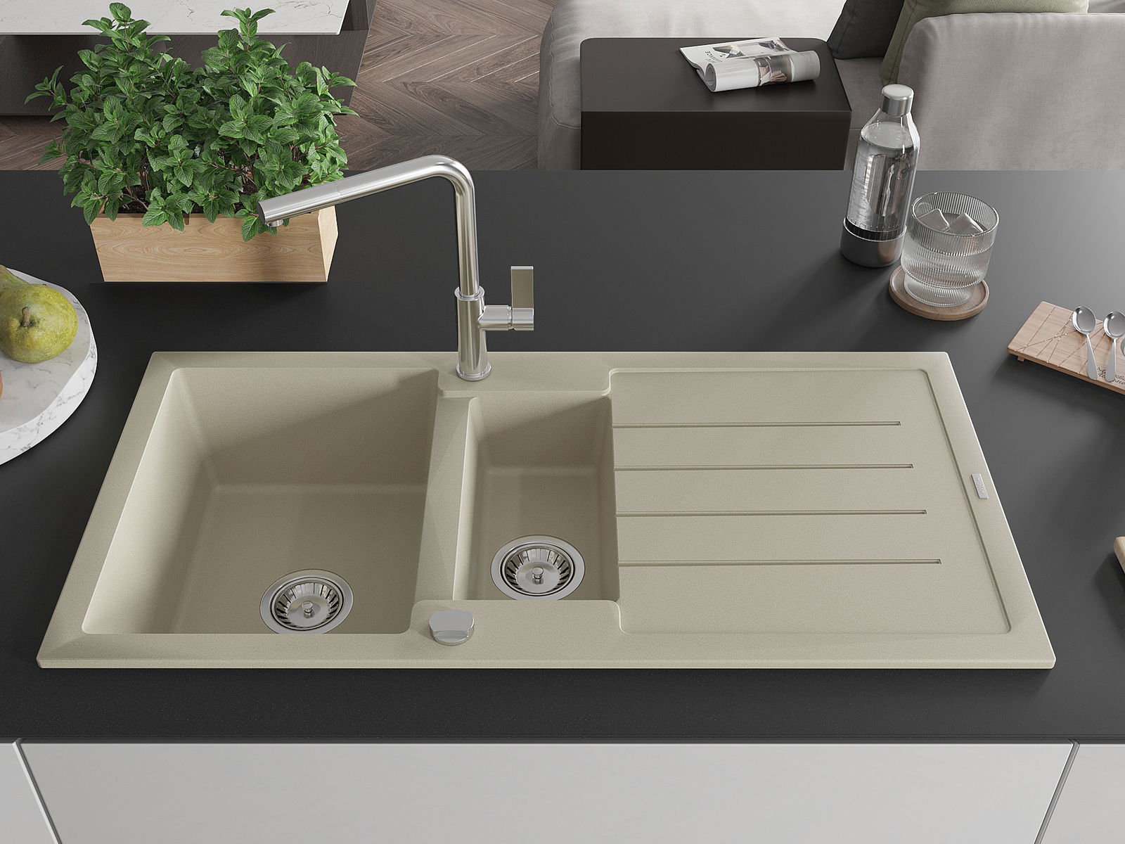Povrch umývadla je odolný voči škvrnám a sfarbeniu, vďaka čomu sa ľahko čistí a zachováva si svoju farbu po dlhú dobu. Estetický a prakticky dopĺňajúci každú kuchyňu.