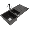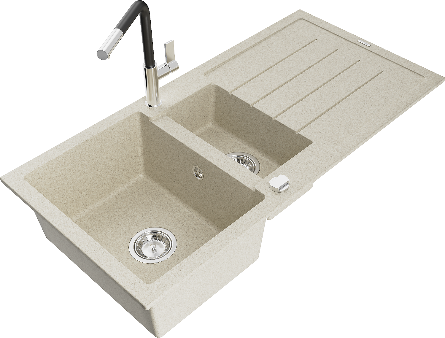 Mexen Andres granitový drez 1,5-komorový s odkvapkávačom a kuchynskou batériou Flora, béžový - 6515-69-670401-07