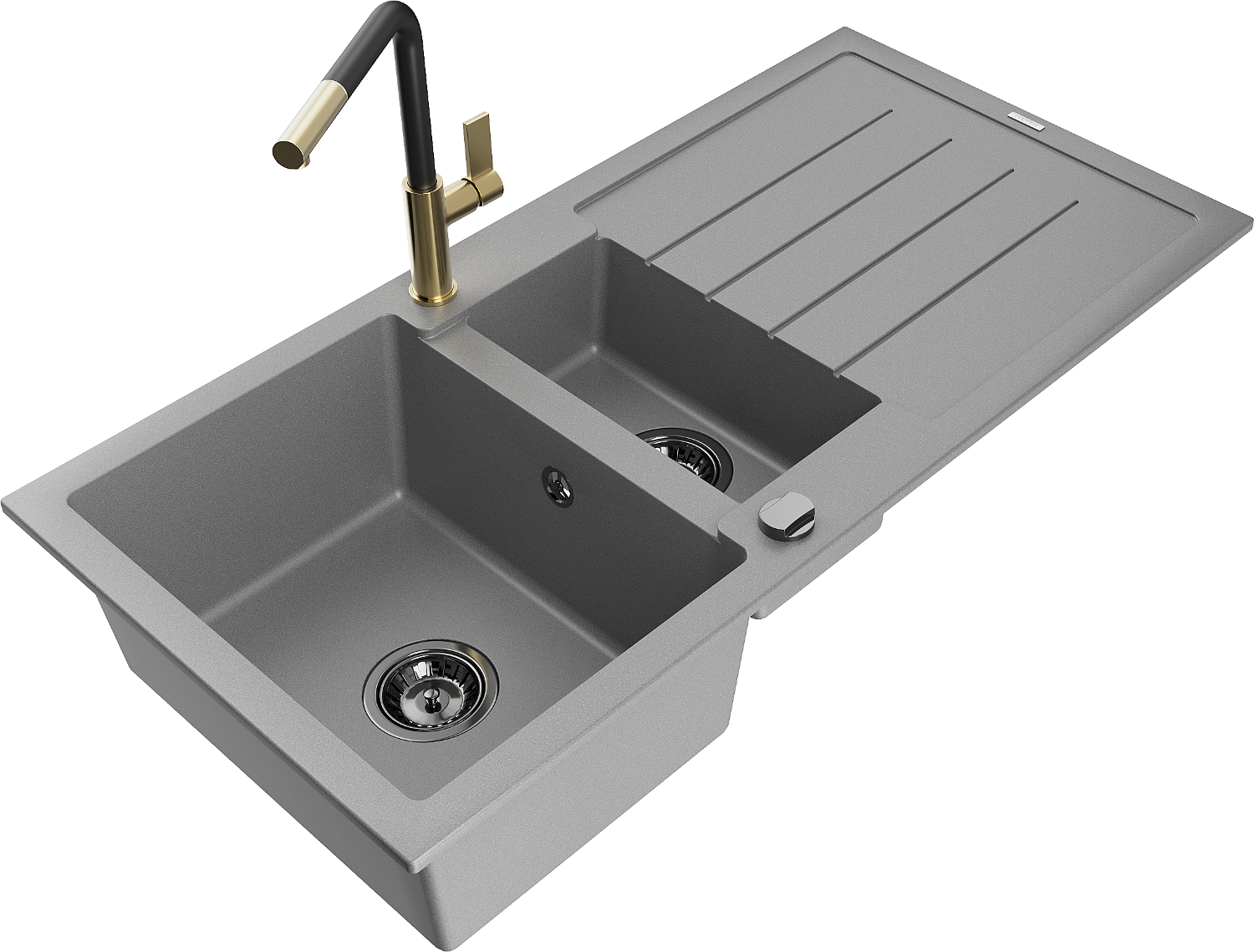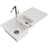 Mexen Andres žulový drez 1,5-komorový s odkvapkávačom a kuchynskou batériou Flora, sivý - 6515-71-670401-57-B