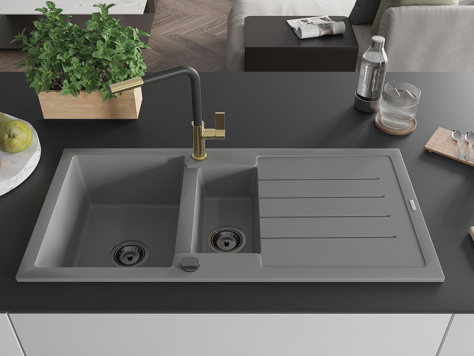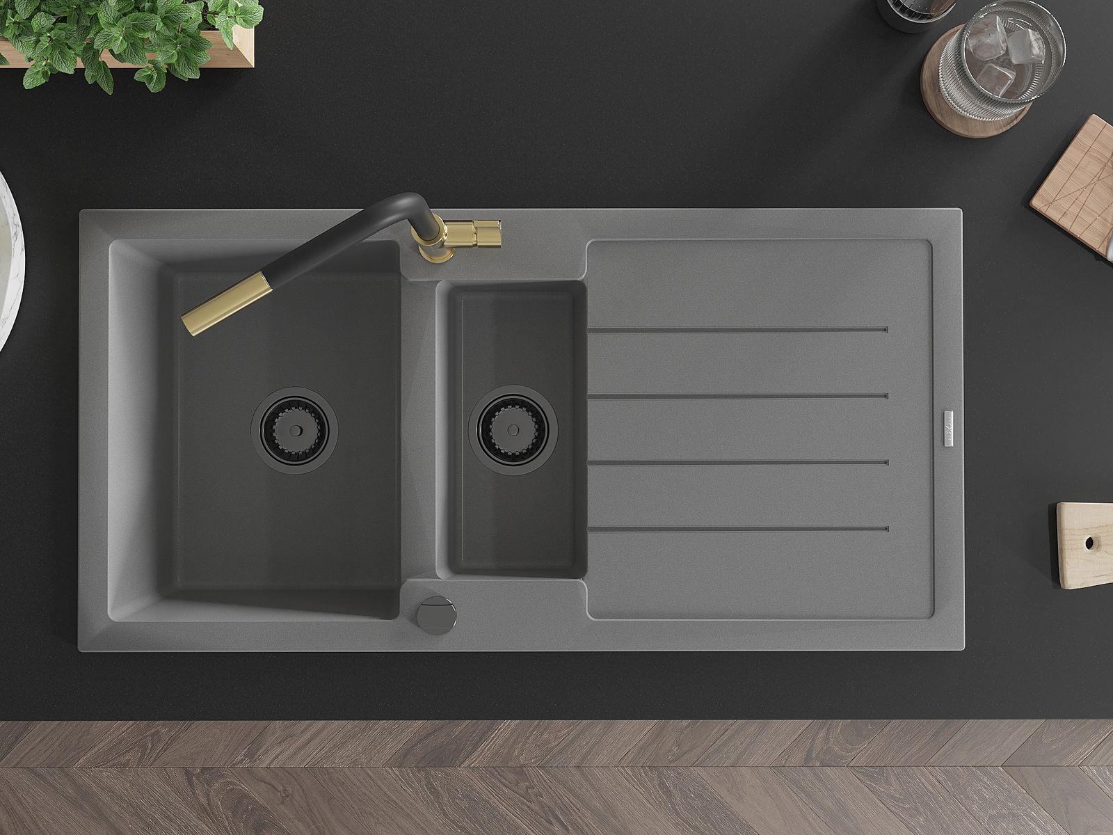 Povrch umývadla je odolný voči škvrnám a sfarbeniu, vďaka čomu sa ľahko čistí a zachováva si svoju farbu po dlhú dobu. Estetický a prakticky dopĺňajúci každú kuchyňu.