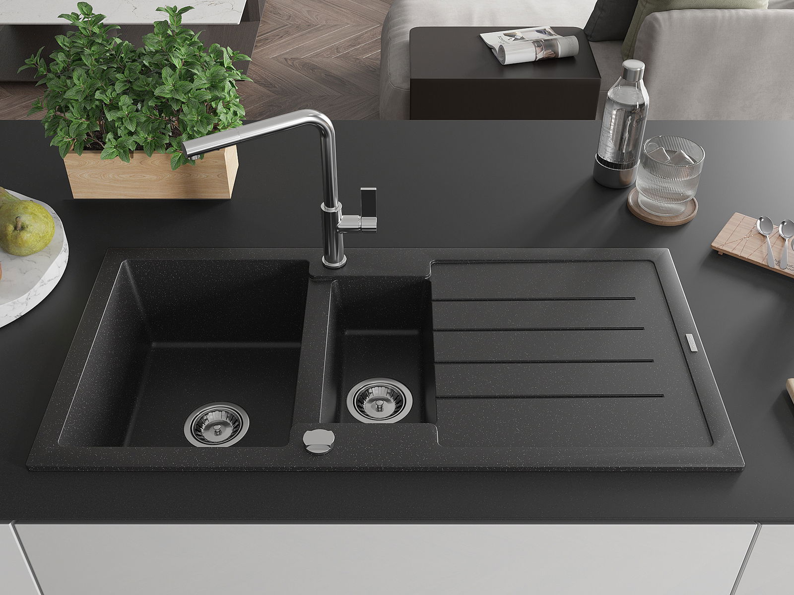 Povrch umývadla je odolný voči škvrnám a sfarbeniu, vďaka čomu sa ľahko čistí a zachováva si svoju farbu po dlhú dobu. Estetický a prakticky dopĺňajúci každú kuchyňu.