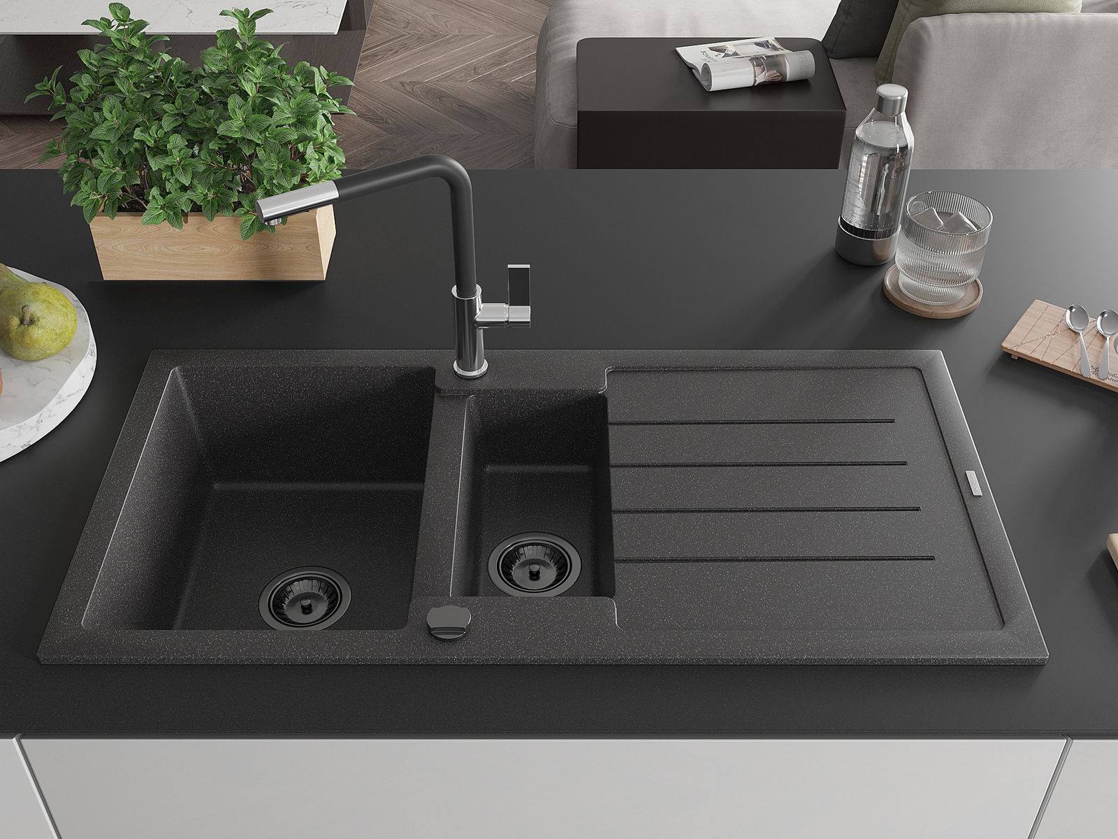 Povrch umývadla je odolný voči škvrnám a sfarbeniu, vďaka čomu sa ľahko čistí a zachováva si svoju farbu po dlhú dobu. Estetický a prakticky dopĺňajúci každú kuchyňu.