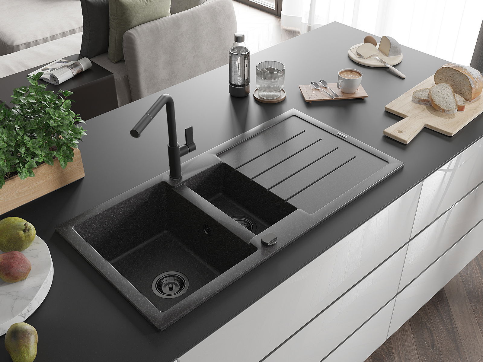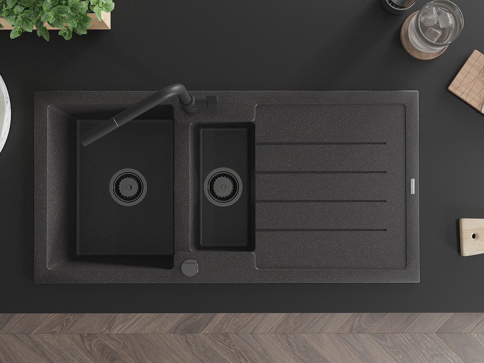 Povrch umývadla je odolný voči škvrnám a sfarbeniu, vďaka čomu sa ľahko čistí a zachováva si svoju farbu po dlhú dobu. Estetický a prakticky dopĺňajúci každú kuchyňu.