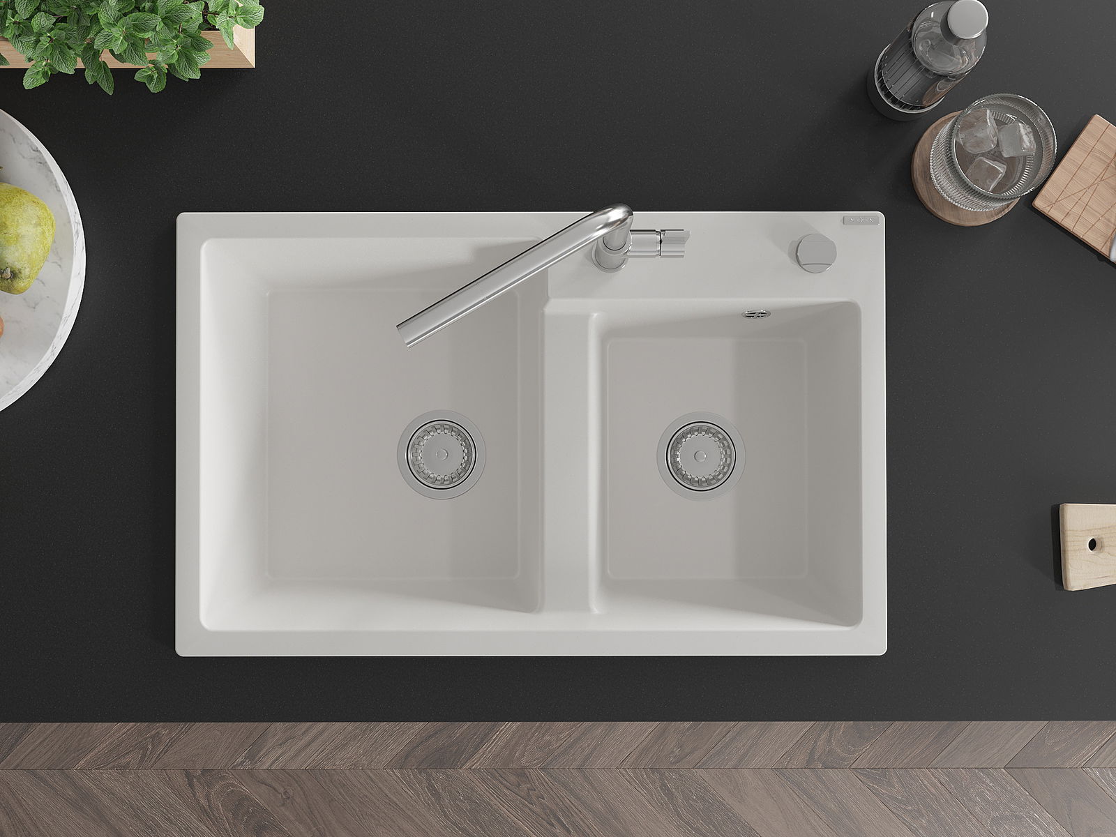 Povrch umývadla je odolný voči škvrnám a sfarbeniu, vďaka čomu sa ľahko čistí a zachováva si svoju farbu po dlhú dobu. Estetický a prakticky dopĺňajúci každú kuchyňu.