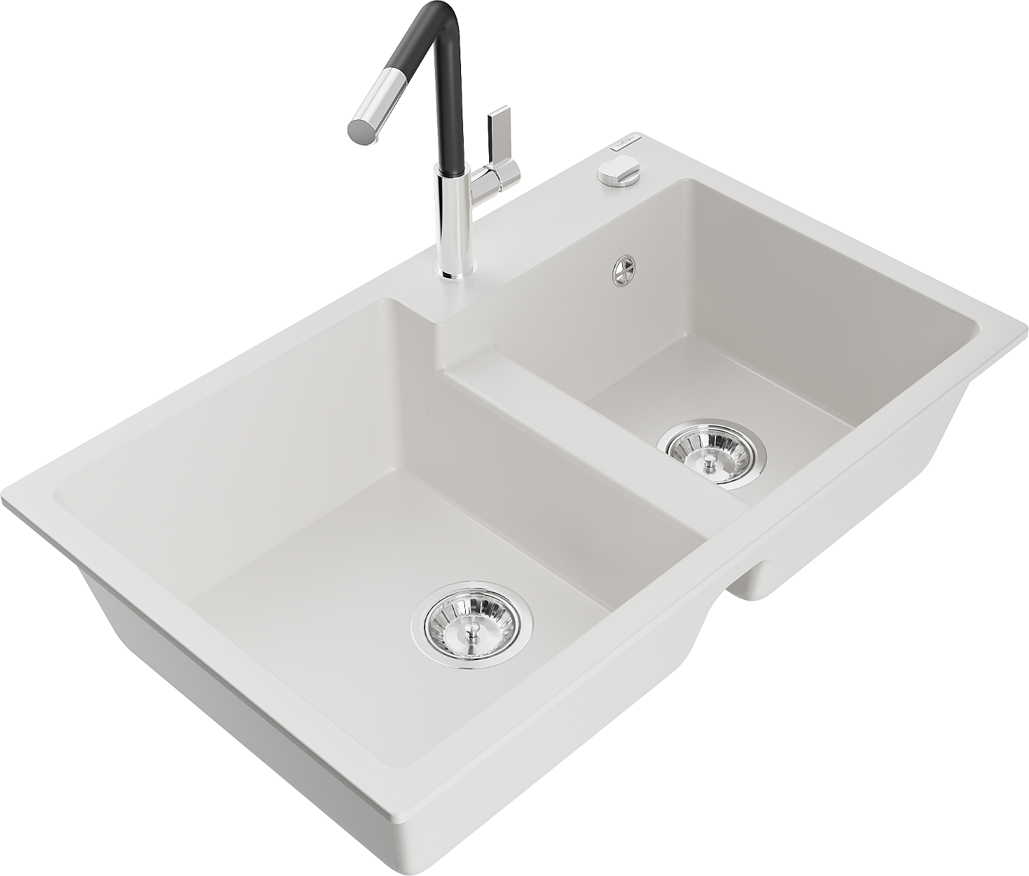 Mexen Tomas žulový drez s 2 komorami a kuchynskou batériou Flora, biela - 6516-20-670401-07