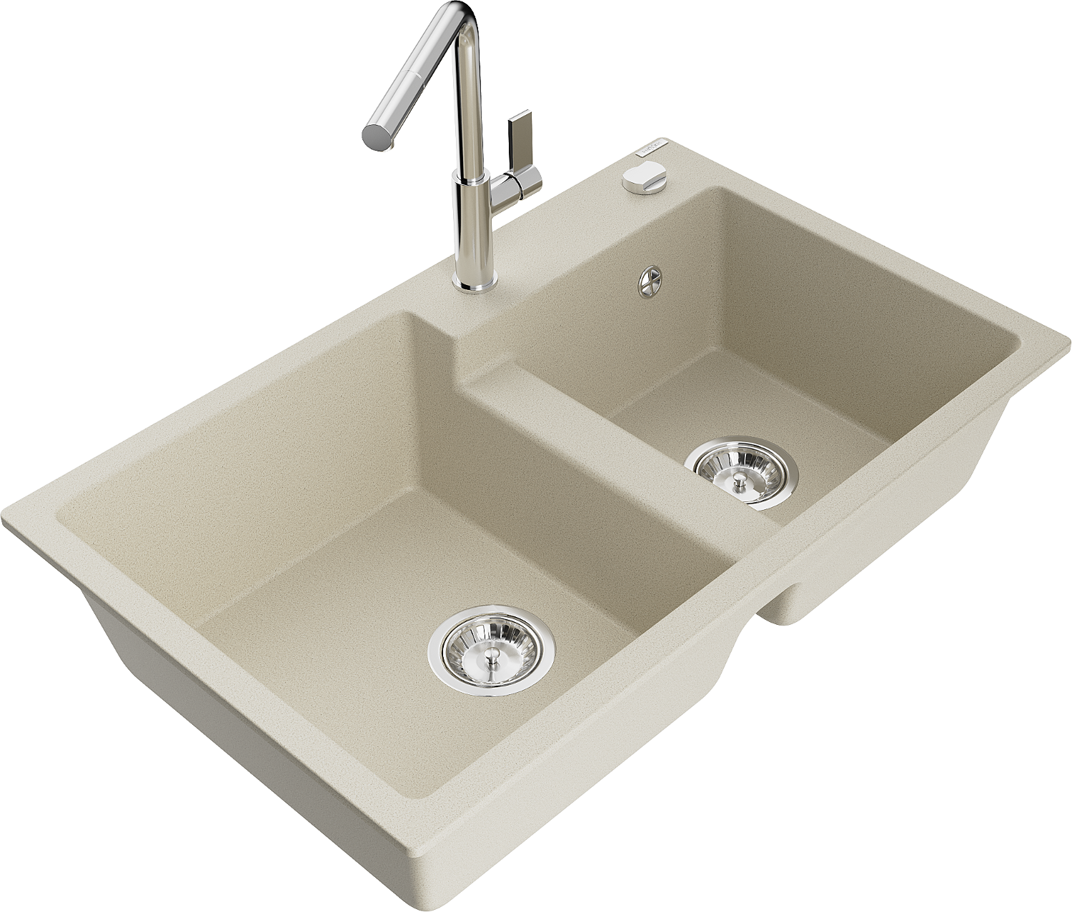 Mexen Tomas granitový dvojkomorový drez s kuchynskou batériou Flora, béžový - 6516-69-670401-00