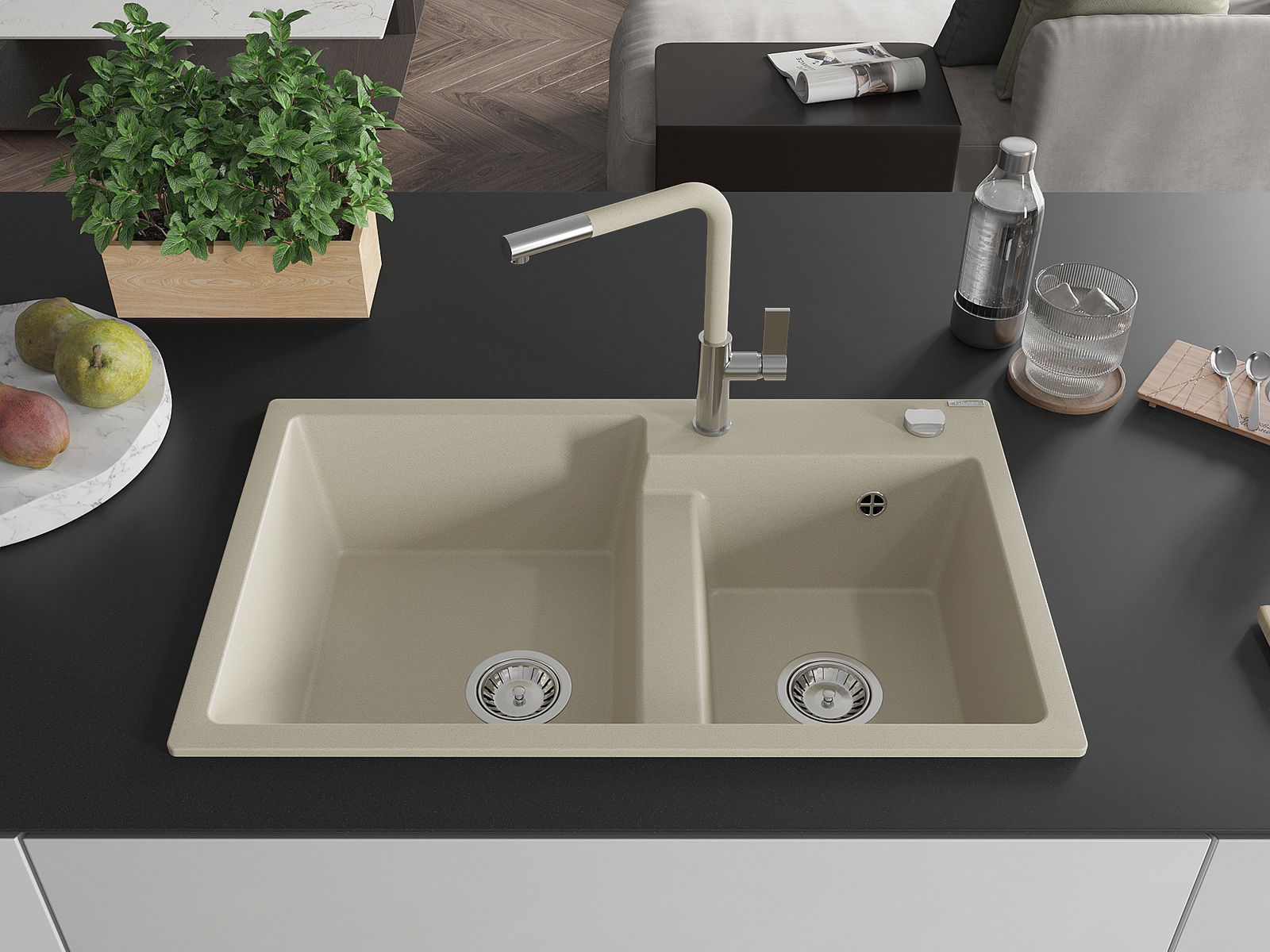 Povrch umývadla je odolný voči škvrnám a sfarbeniu, vďaka čomu sa ľahko čistí a zachováva si svoju farbu po dlhú dobu. Estetický a prakticky dopĺňajúci každú kuchyňu.