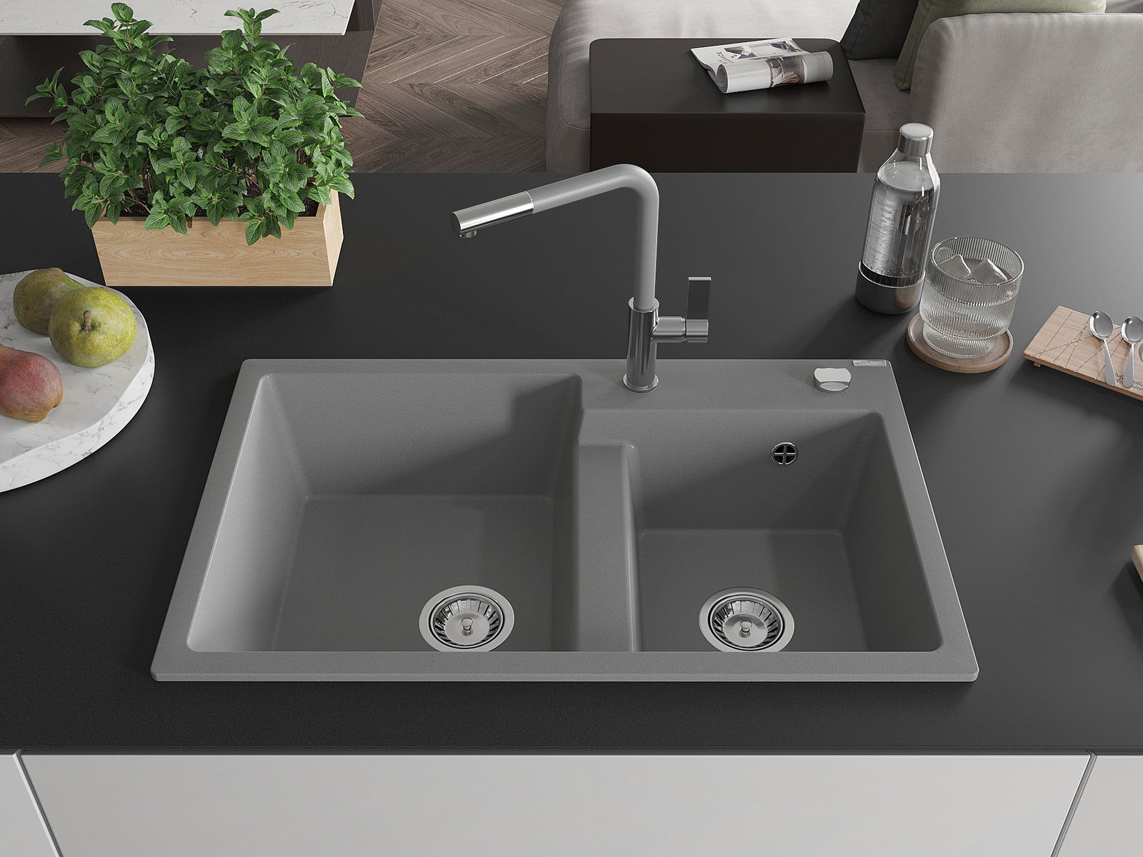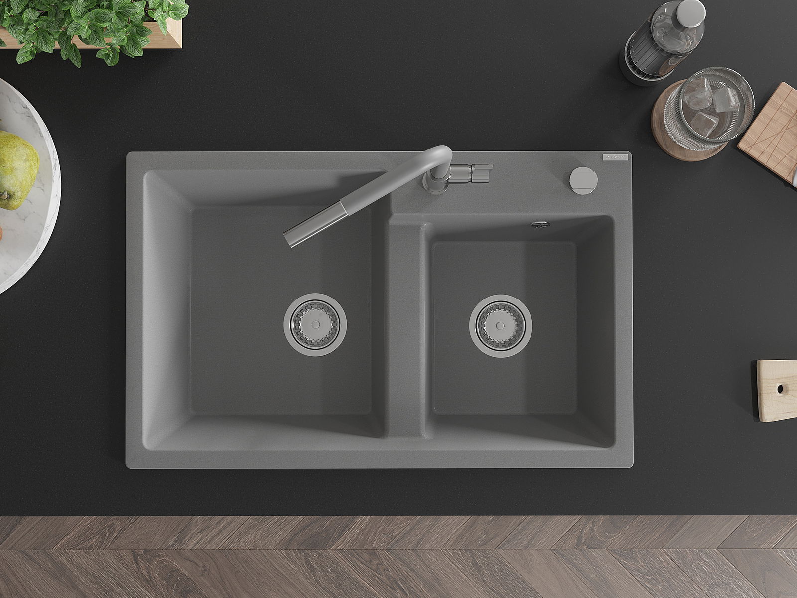Povrch umývadla je odolný voči škvrnám a sfarbeniu, vďaka čomu sa ľahko čistí a zachováva si svoju farbu po dlhú dobu. Estetický a prakticky dopĺňajúci každú kuchyňu.