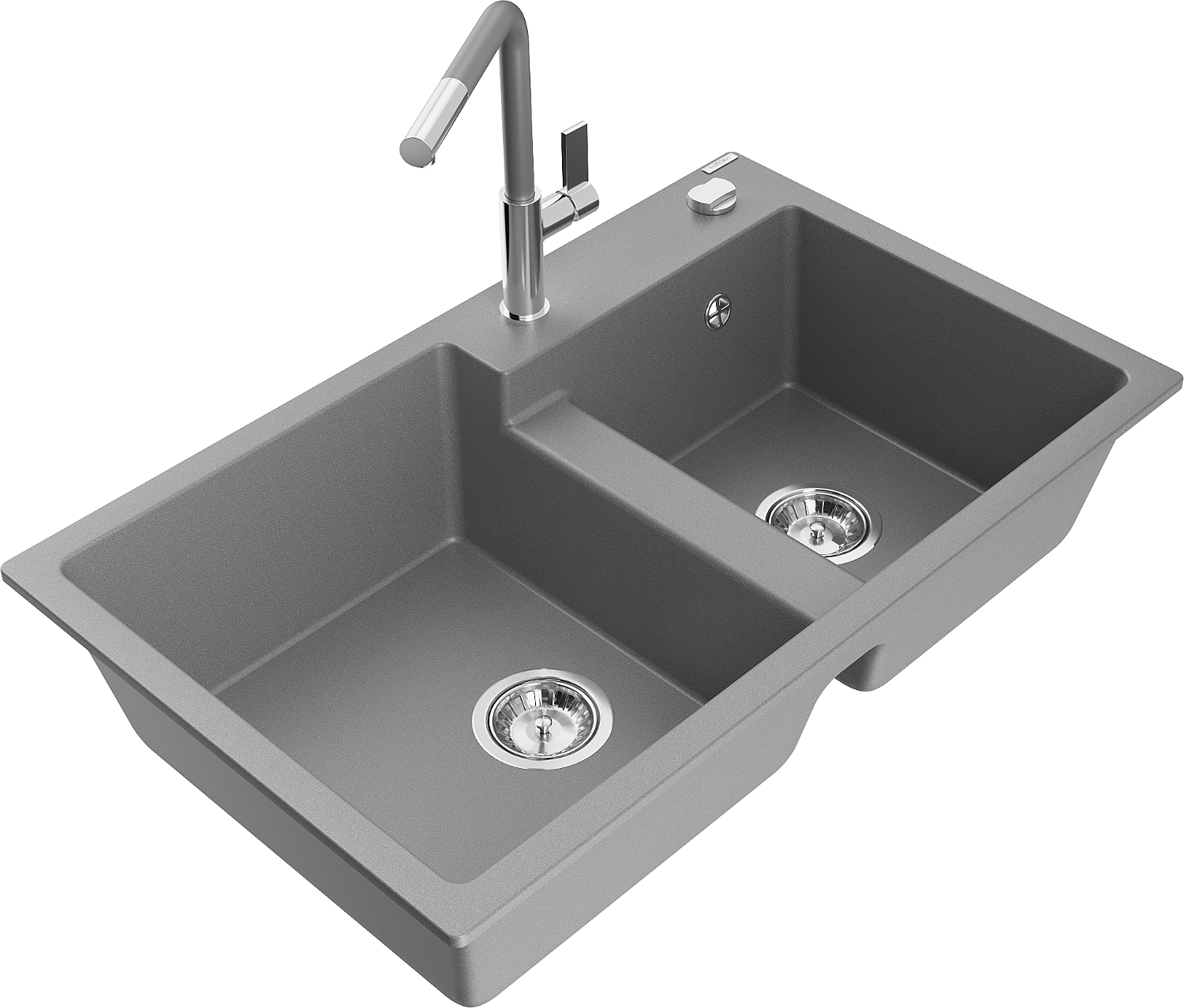 Mexen Tomas granitový drez 2-komorový s kuchynskou batériou Flora, šedý - 6516-71-670401-06