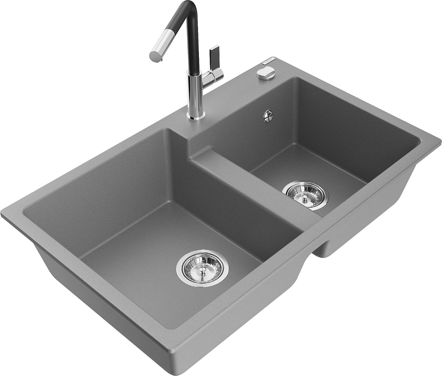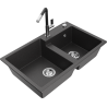 Mexen Tomas dvojkomorový granitový drez s kuchynskou batériou Flora, sivý - 6516-71-670401-07