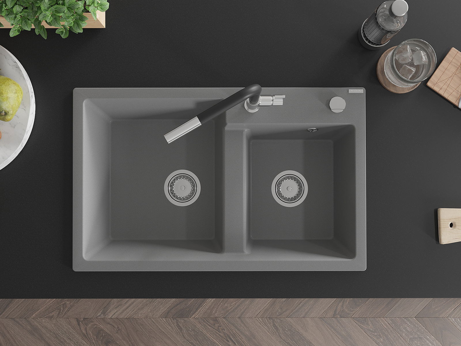 Povrch umývadla je odolný voči škvrnám a sfarbeniu, vďaka čomu sa ľahko čistí a zachováva si svoju farbu po dlhú dobu. Estetický a prakticky dopĺňajúci každú kuchyňu.