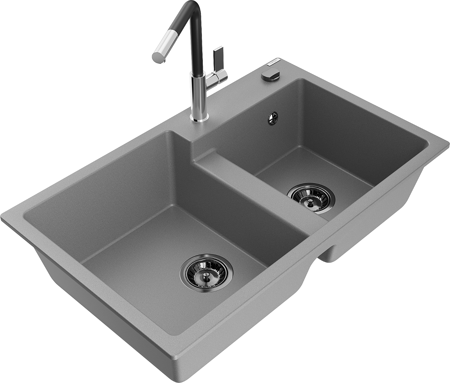 Mexen Tomas žulový drez s 2 komorami a kuchynskou batériou Flora, sivá - 6516-71-670401-07-B