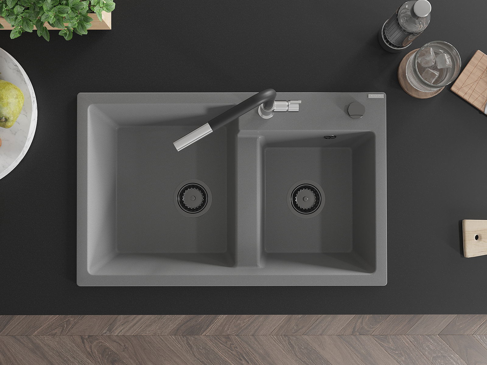 Povrch umývadla je odolný voči škvrnám a sfarbeniu, vďaka čomu sa ľahko čistí a zachováva si svoju farbu po dlhú dobu. Estetický a prakticky dopĺňajúci každú kuchyňu.