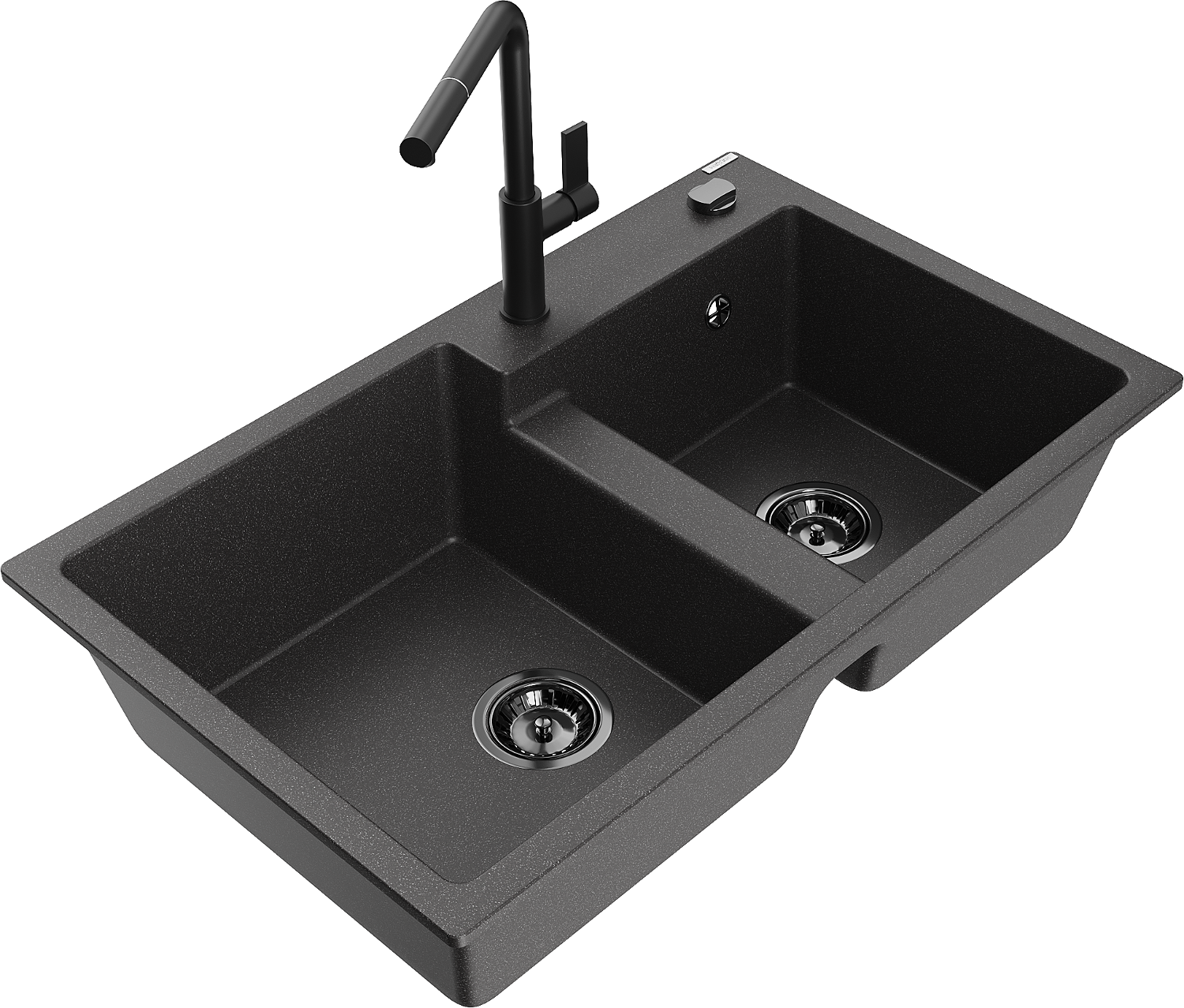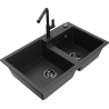 Mexen Tomas žulový kuchynský drez 2-komorový s kuchynskou batériou Flora, čierny škvrnitý - 6516-76-670401-70-B