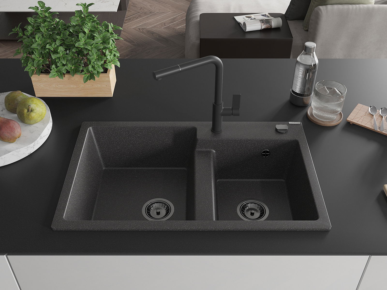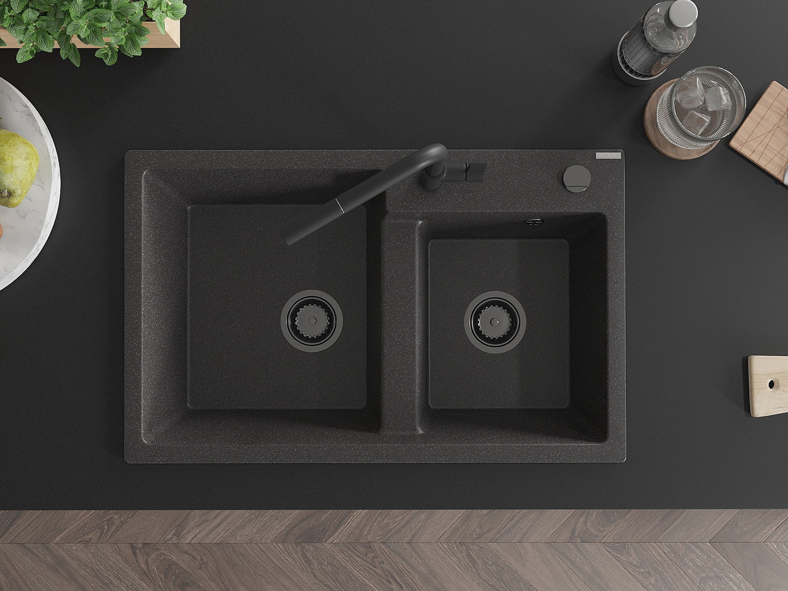 Povrch umývadla je odolný voči škvrnám a sfarbeniu, vďaka čomu sa ľahko čistí a zachováva si svoju farbu po dlhú dobu. Estetický a prakticky dopĺňajúci každú kuchyňu.