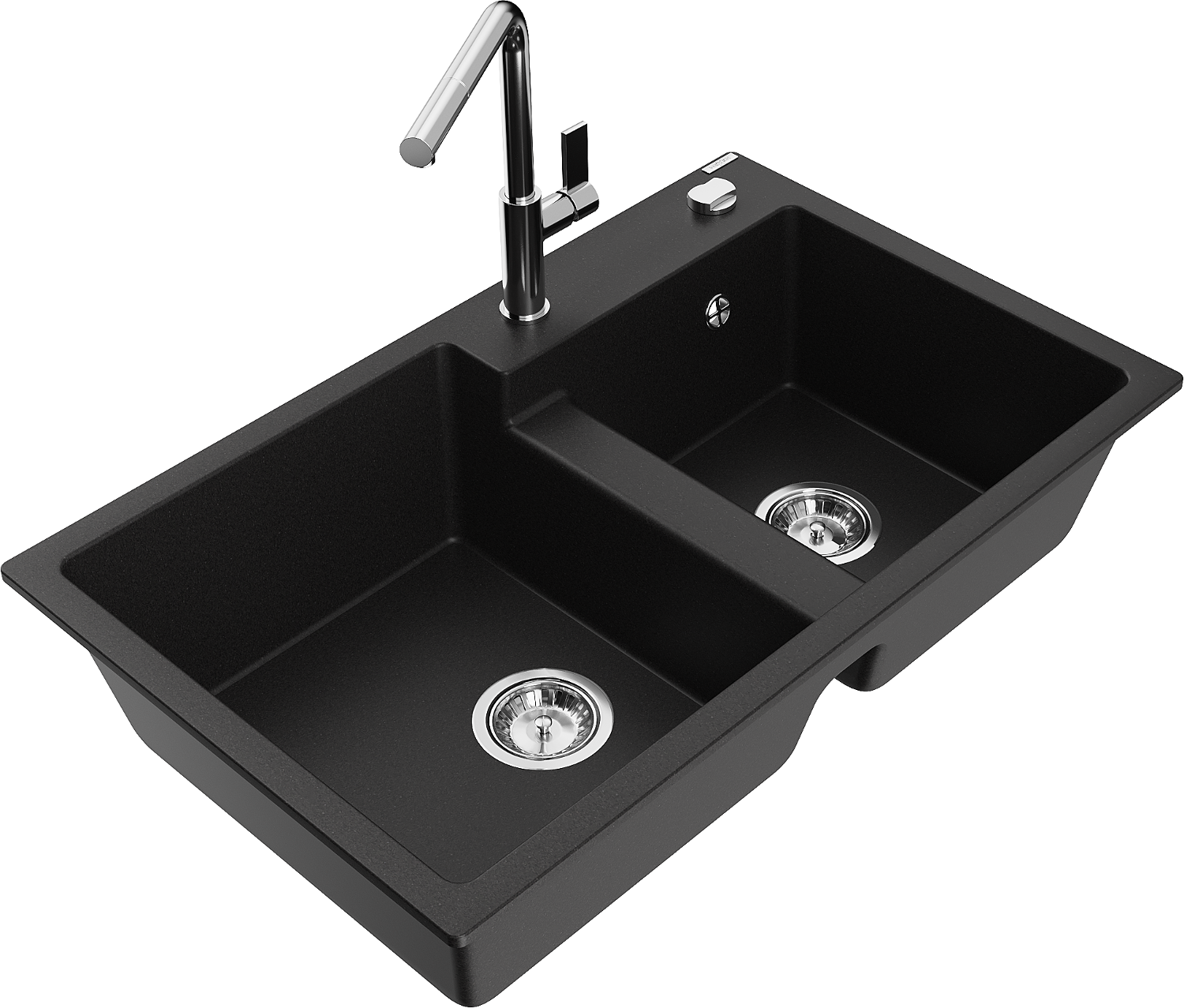 Mexen Tomas dvojkomorový granitový drez s kuchynskou batériou Flora, čierny - 6516-77-670401-00