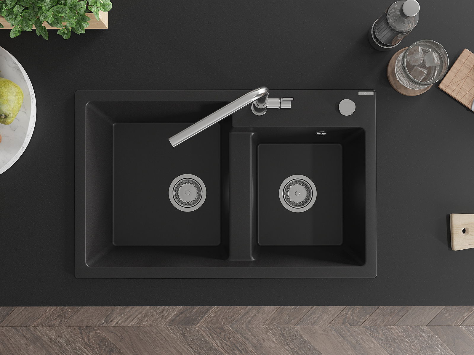 Povrch umývadla je odolný voči škvrnám a sfarbeniu, vďaka čomu sa ľahko čistí a zachováva si svoju farbu po dlhú dobu. Estetický a prakticky dopĺňajúci každú kuchyňu.
