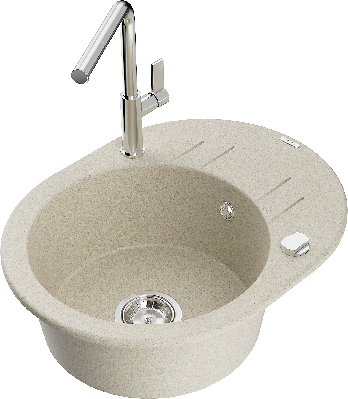 Mexen Kevin granitový drez s odkvapkávačom a kuchynskou batériou Flora, béžový - 6517-69-670401-00