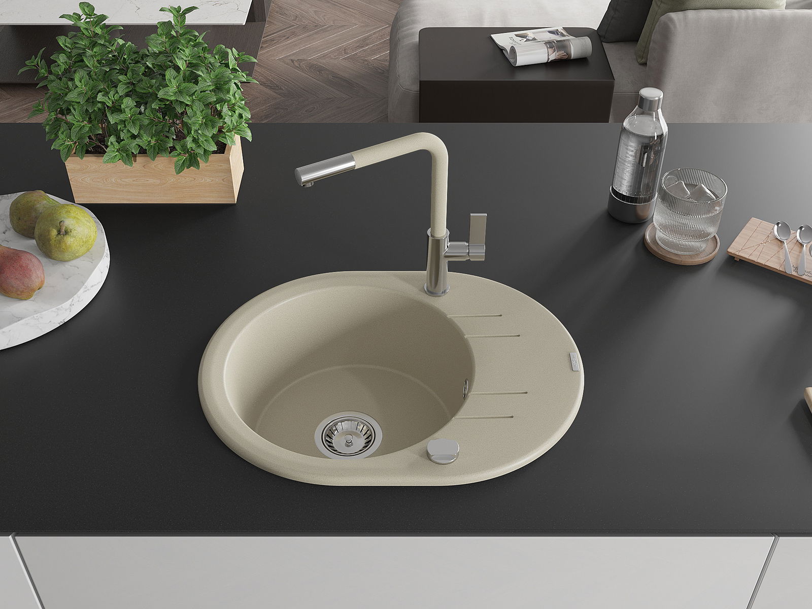 Povrch umývadla je odolný voči škvrnám a sfarbeniu, vďaka čomu sa ľahko čistí a zachováva si svoju farbu po dlhú dobu. Estetický a prakticky dopĺňajúci každú kuchyňu.