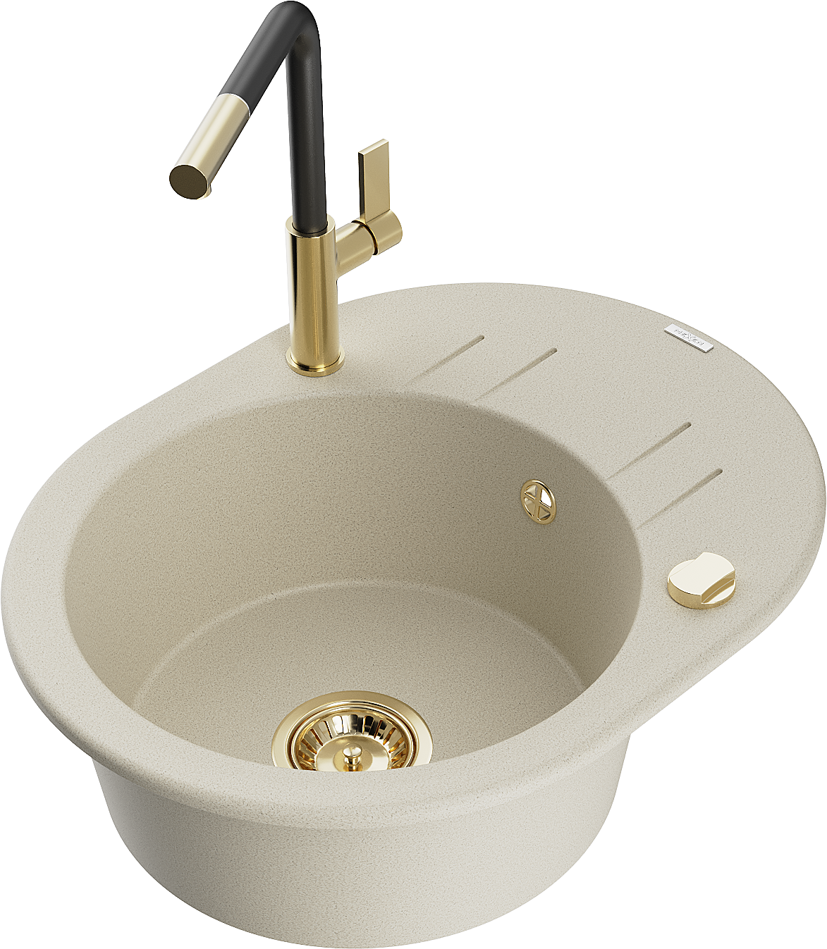 Mexen Kevin žulový drez 1-komorový s odkvapkávacou plochou a kuchynskou batériou Flora, béžový - 6517-69-670401-57-G