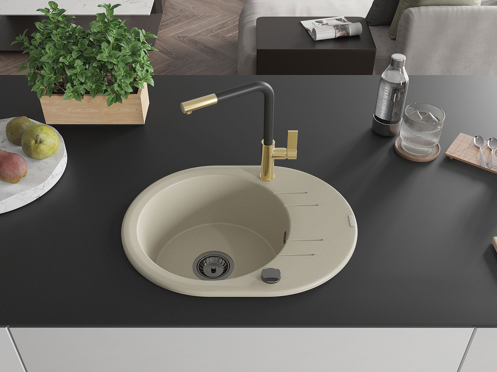 Povrch umývadla je odolný voči škvrnám a sfarbeniu, vďaka čomu sa ľahko čistí a zachováva si svoju farbu po dlhú dobu. Estetický a prakticky dopĺňajúci každú kuchyňu.