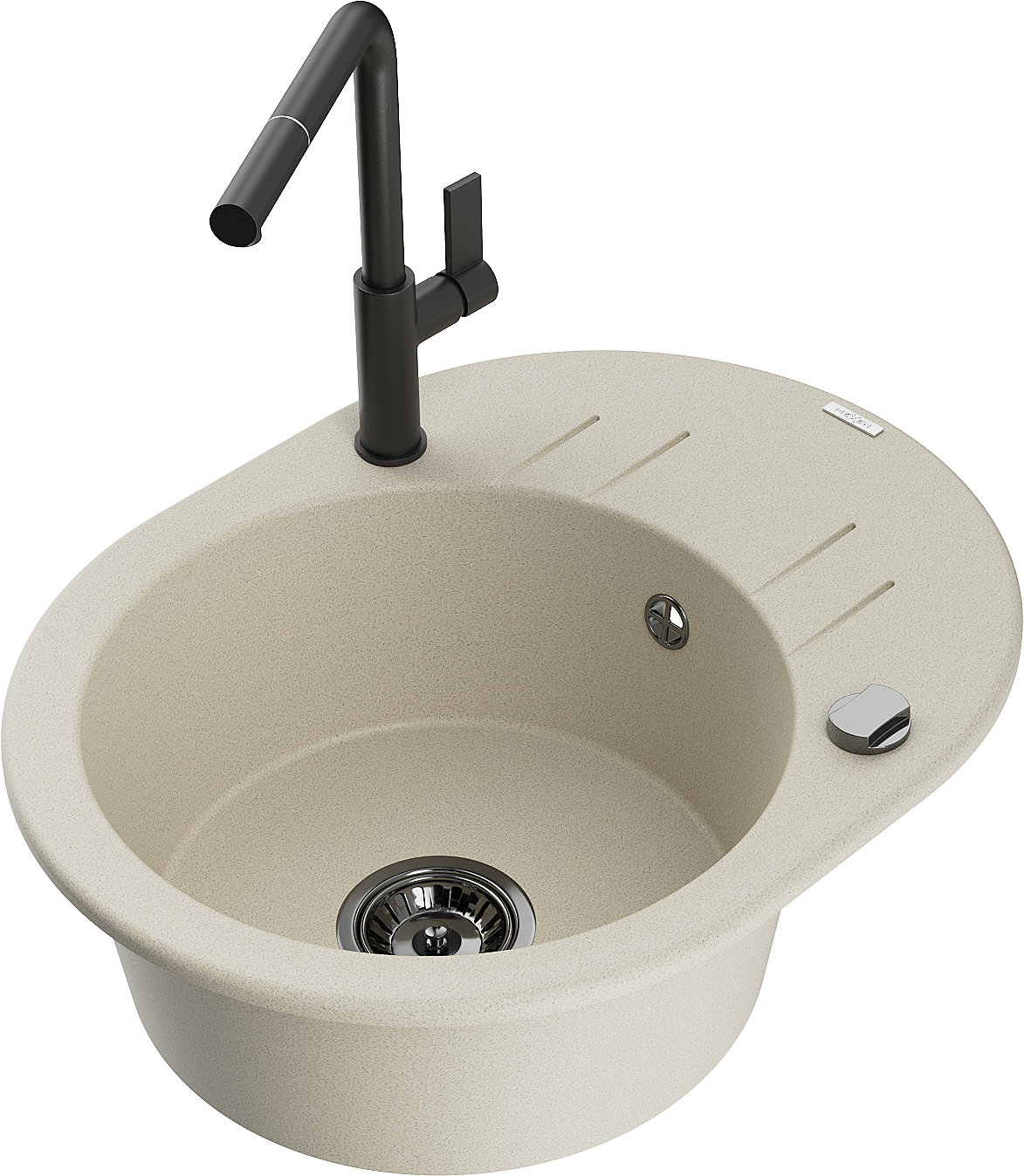 Mexen Kevin granitový kuchynský drez 1-komorový s odkvapkávačom a kuchynskou batériou Flora, béžový - 6517-69-670401-70-B