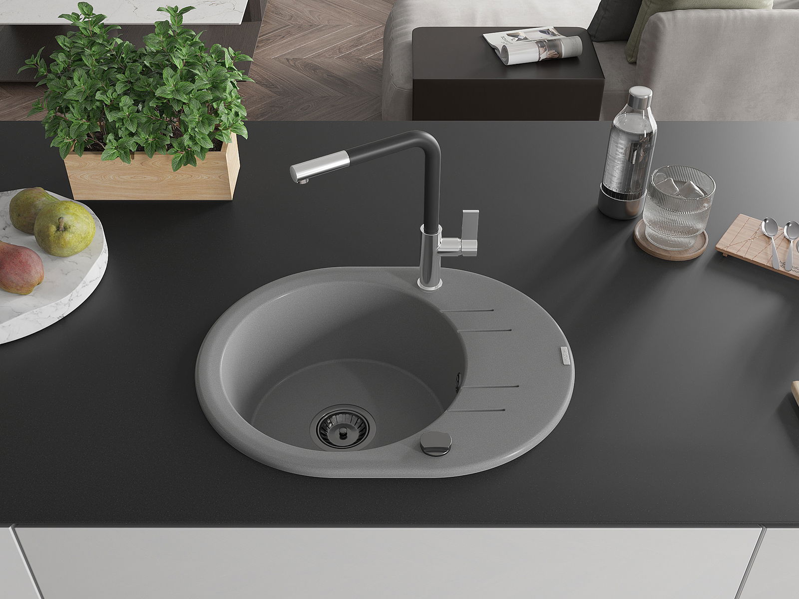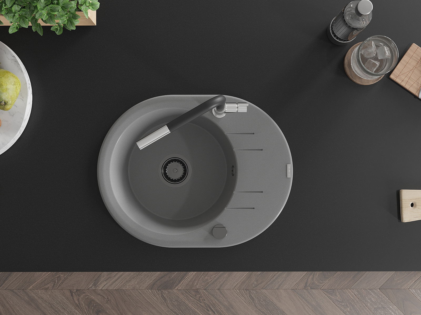 Povrch umývadla je odolný voči škvrnám a sfarbeniu, vďaka čomu sa ľahko čistí a zachováva si svoju farbu po dlhú dobu. Estetický a prakticky dopĺňajúci každú kuchyňu.