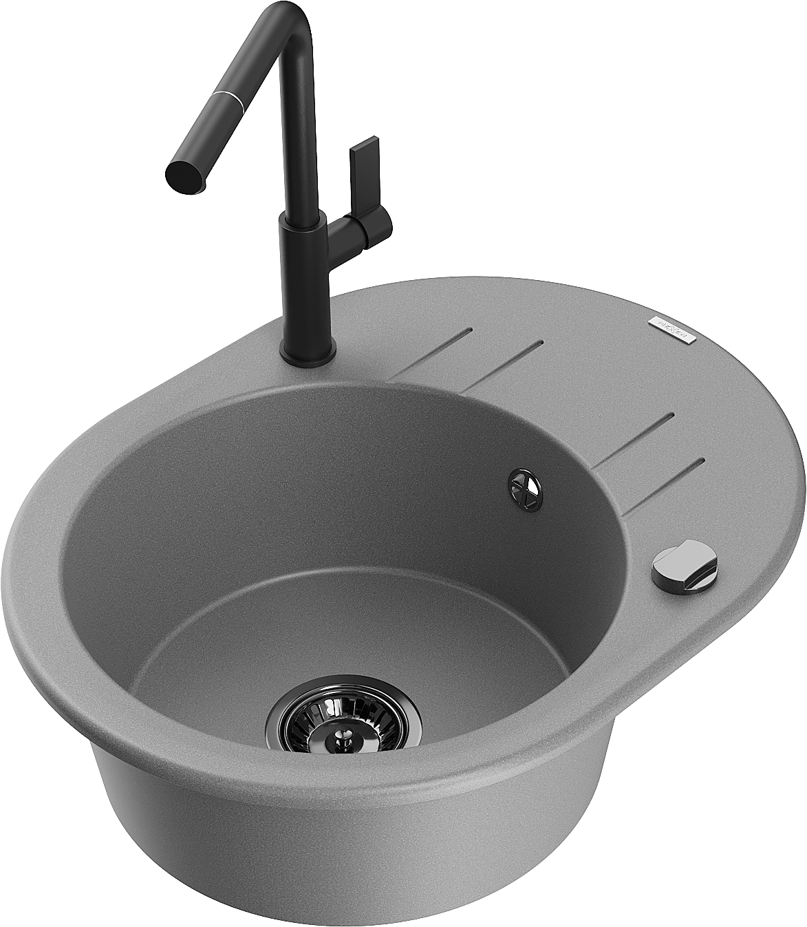 Mexen Kevin žulový drez 1-komorový s odkvapkávačom a kuchynskou batériou Flora, sivý - 6517-71-670401-70-B