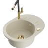 Povrch kuchynského drezu je odolný voči škvrnám a zafarbeniu, vďaka čomu sa ľahko udržiava a zachováva svoju farbu počas dlhého obdobia používania. Estetický a praktický doplnok pre každú kuchyňu.