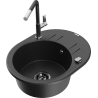 Mexen Kevin granitový kuchynský drez s 1 komorou a odkvapkávačom a kuchynskou batériou Flora, čierny s bodkami