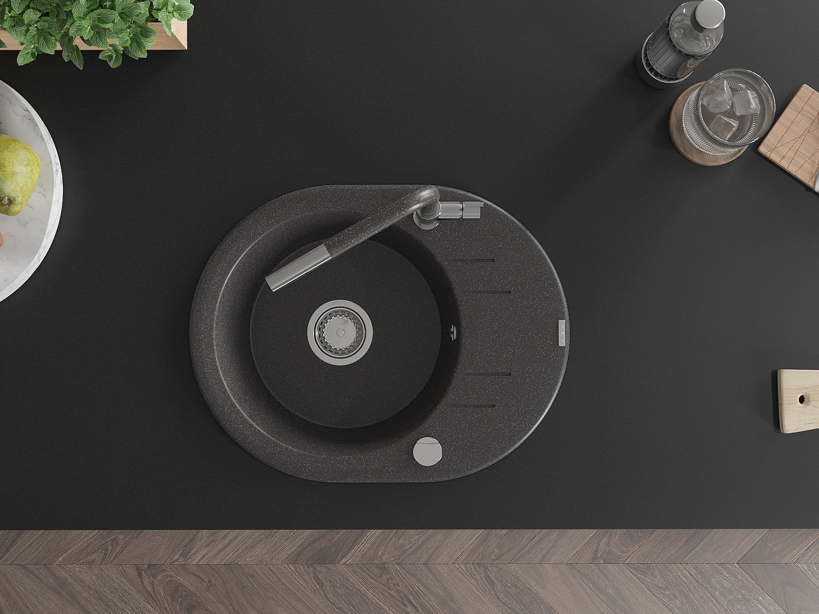 Povrch umývadla je odolný voči škvrnám a sfarbeniu, vďaka čomu sa ľahko čistí a zachováva si svoju farbu po dlhú dobu. Estetický a prakticky dopĺňajúci každú kuchyňu.