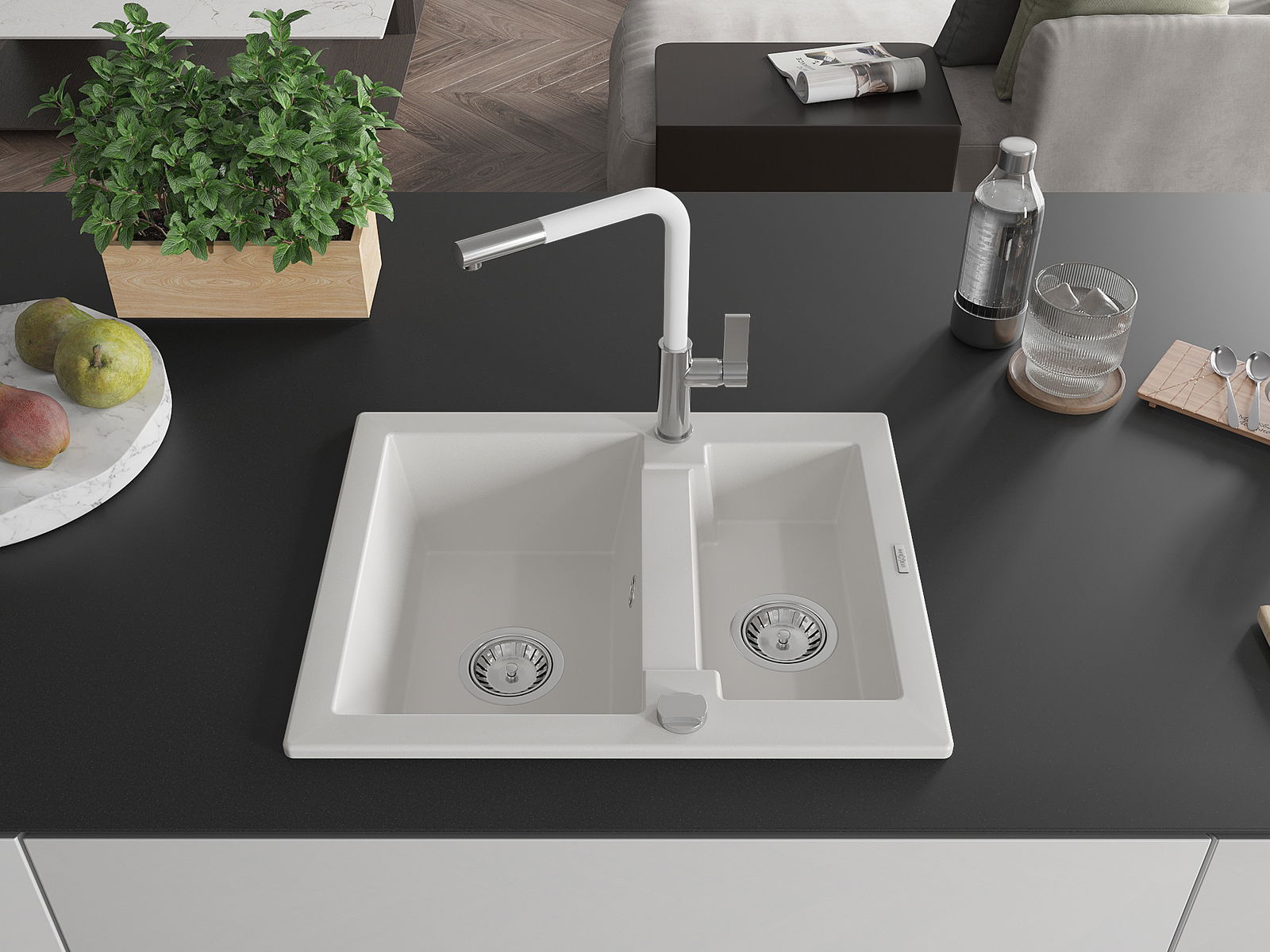 Povrch umývadla je odolný voči škvrnám a sfarbeniu, vďaka čomu sa ľahko čistí a zachováva si svoju farbu po dlhú dobu. Estetický a prakticky dopĺňajúci každú kuchyňu.