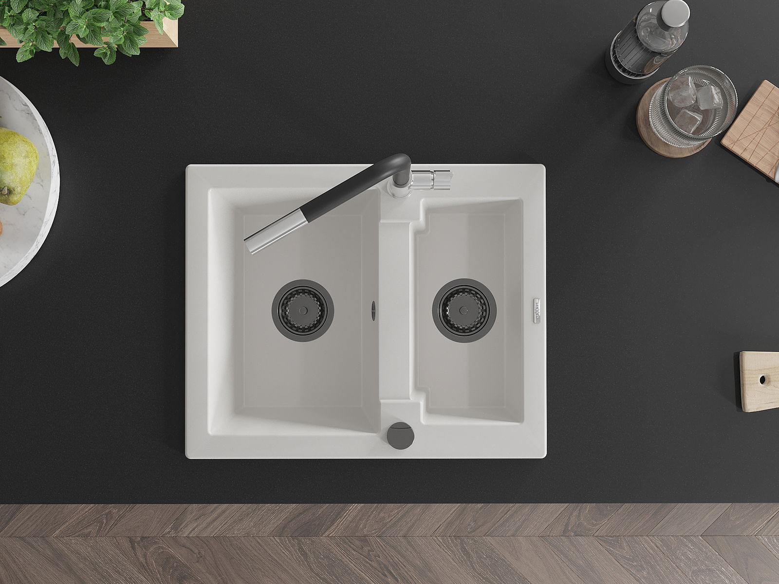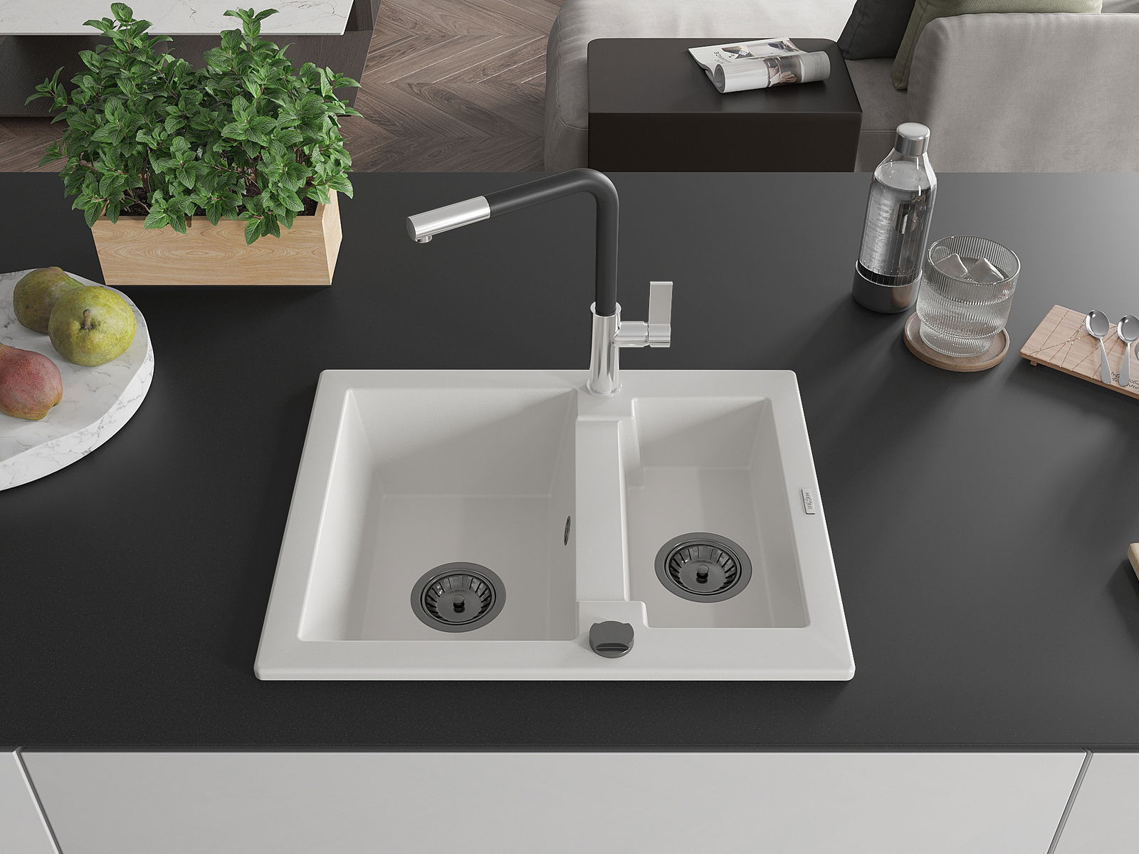 Povrch umývadla je odolný voči škvrnám a sfarbeniu, vďaka čomu sa ľahko čistí a zachováva si svoju farbu po dlhú dobu. Estetický a prakticky dopĺňajúci každú kuchyňu.