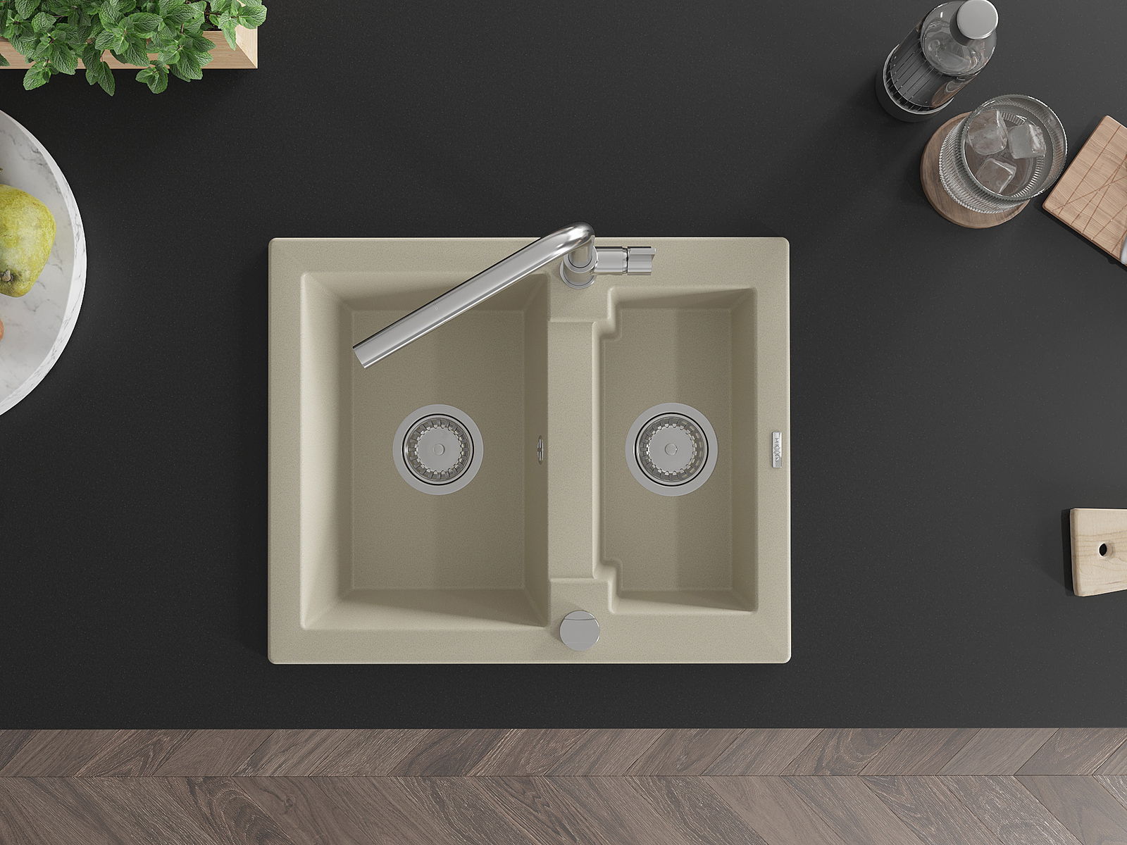 Povrch umývadla je odolný voči škvrnám a sfarbeniu, vďaka čomu sa ľahko čistí a zachováva si svoju farbu po dlhú dobu. Estetický a prakticky dopĺňajúci každú kuchyňu.