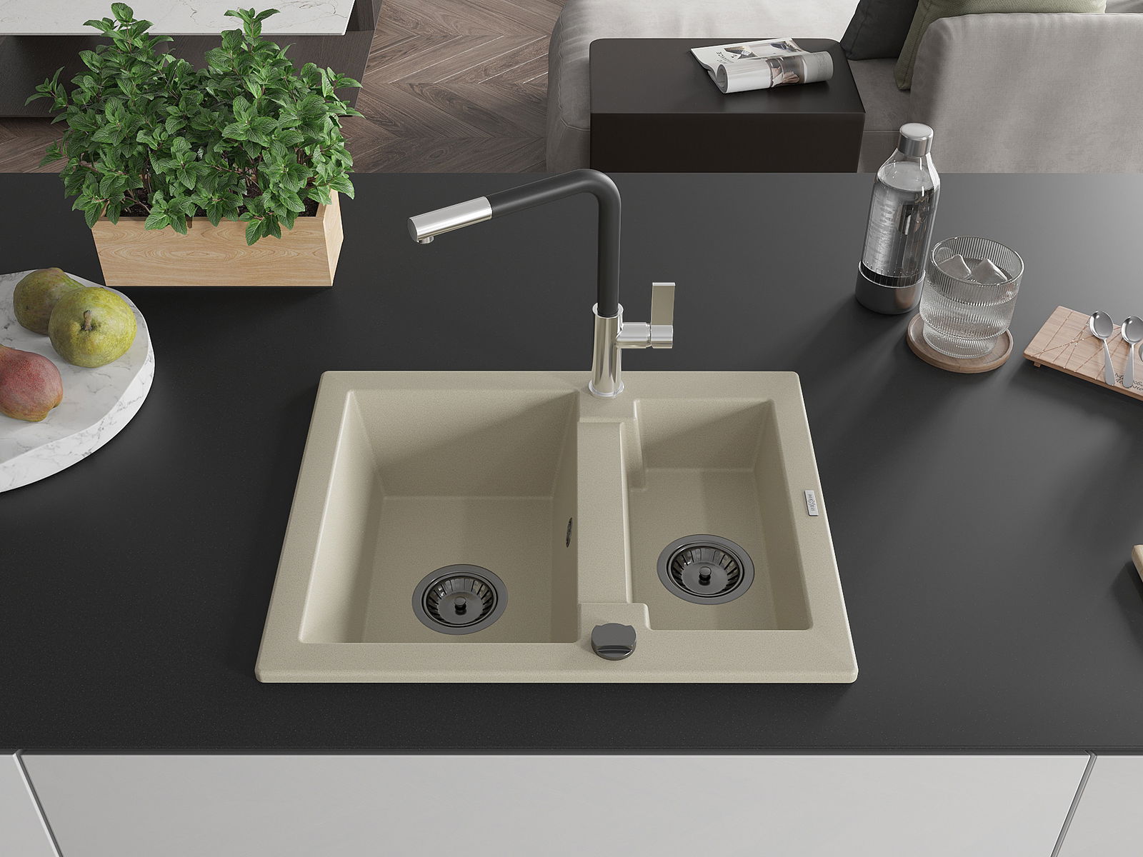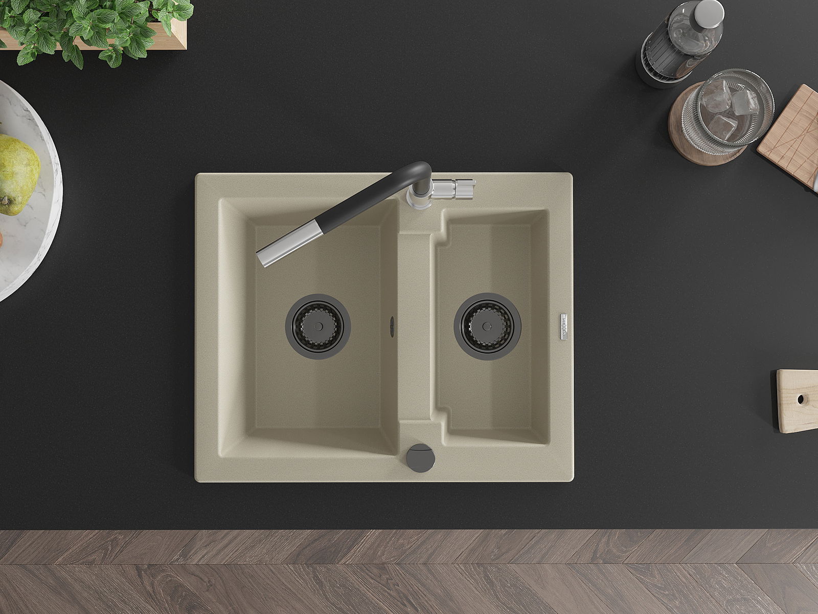 Povrch kuchynského drezu je odolný voči škvrnám a zafarbeniu, vďaka čomu sa ľahko udržiava a zachováva svoju farbu počas dlhého obdobia používania. Estetický a praktický doplnok pre každú kuchyňu.