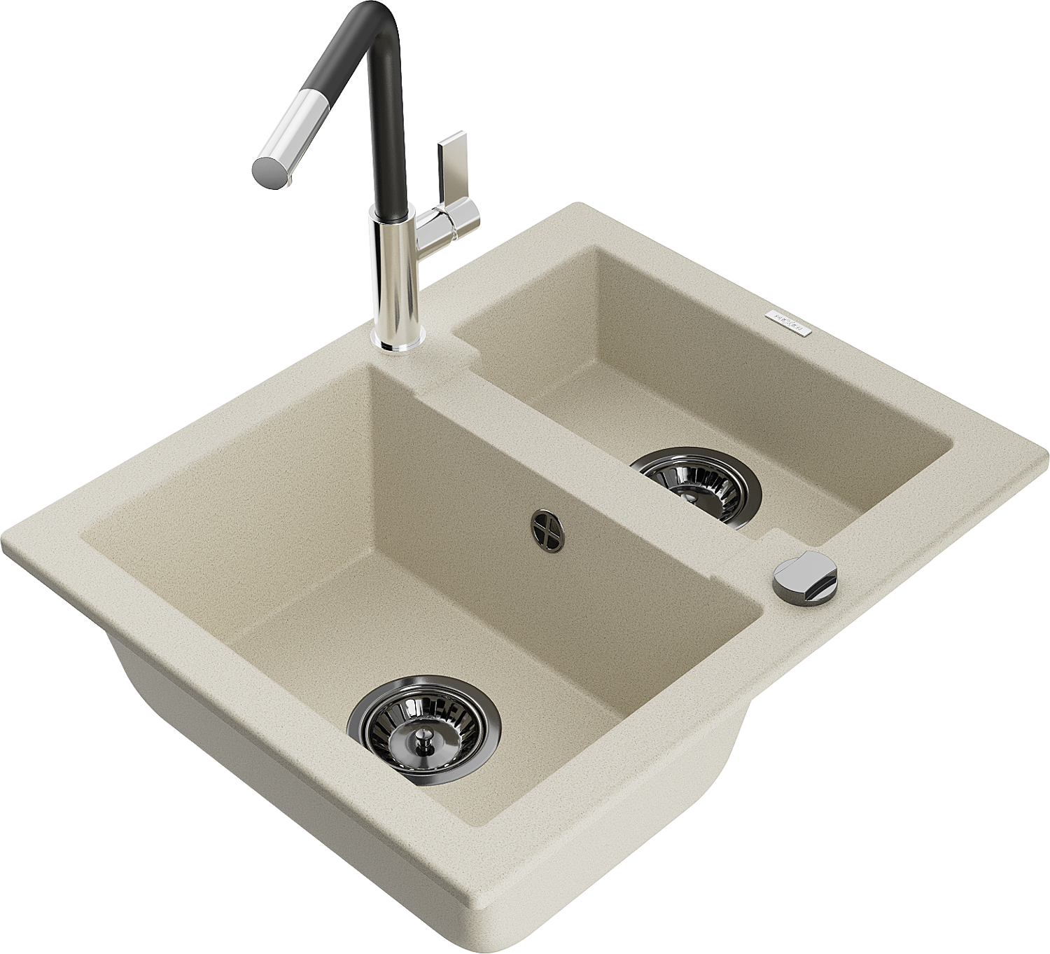 Mexen Carlos žulový drez s 1,5 komorou a kuchynskou batériou Flora, béžový - 6518-69-670401-07-B