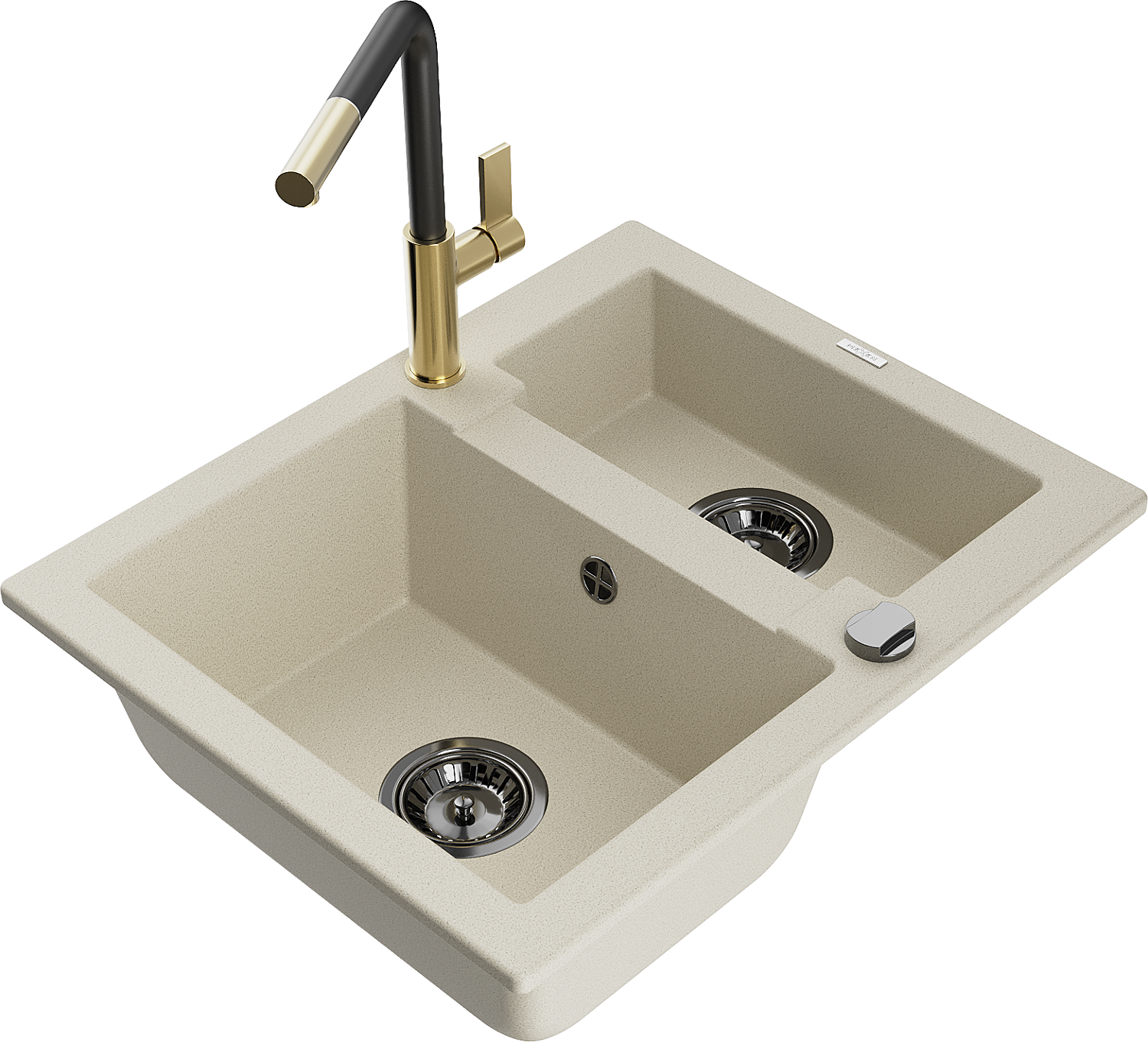 Mexen Carlos granitový kuchynský drez 1,5-komorový s kuchynskou batériou Flora, béžový - 6518-69-670401-57-B