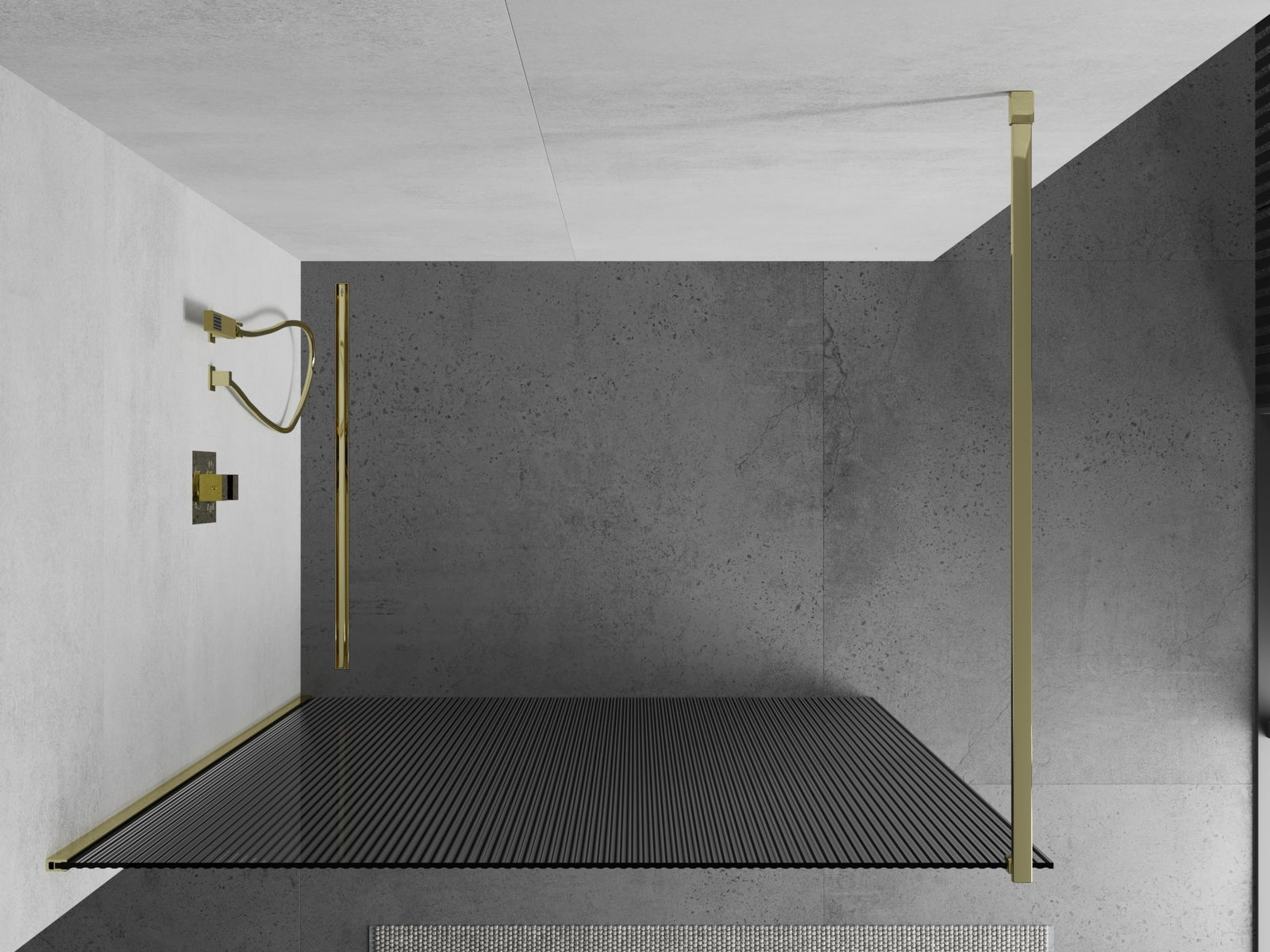 Mexen Kioto sprchová stena Walk-in 110 x 200 cm, prúžky 8 mm, zlatá - 800-110-101-50-09